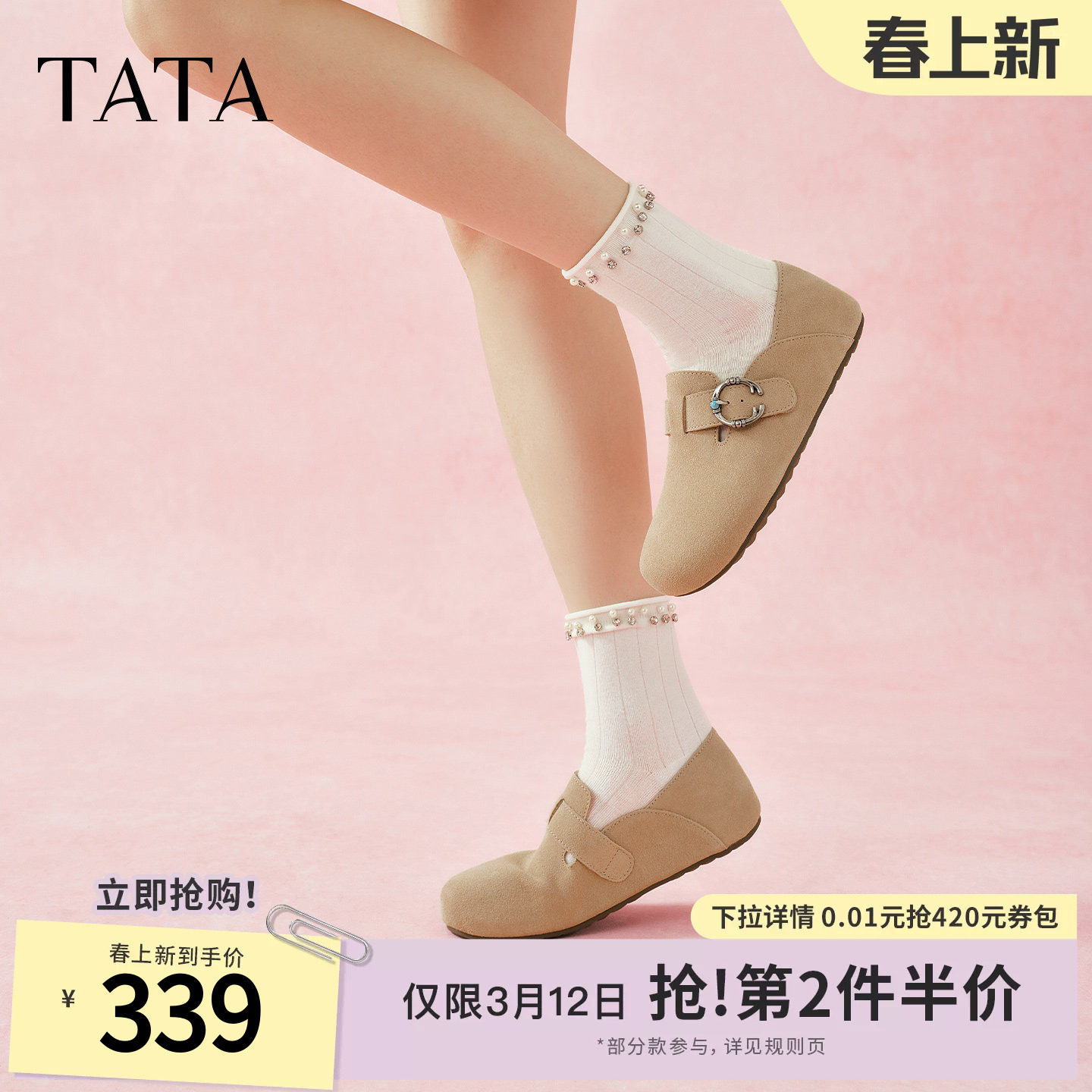 天猫TATA他她女鞋2026春季新款勃肯鞋内增高时尚百搭深口鞋子CUG09AM6