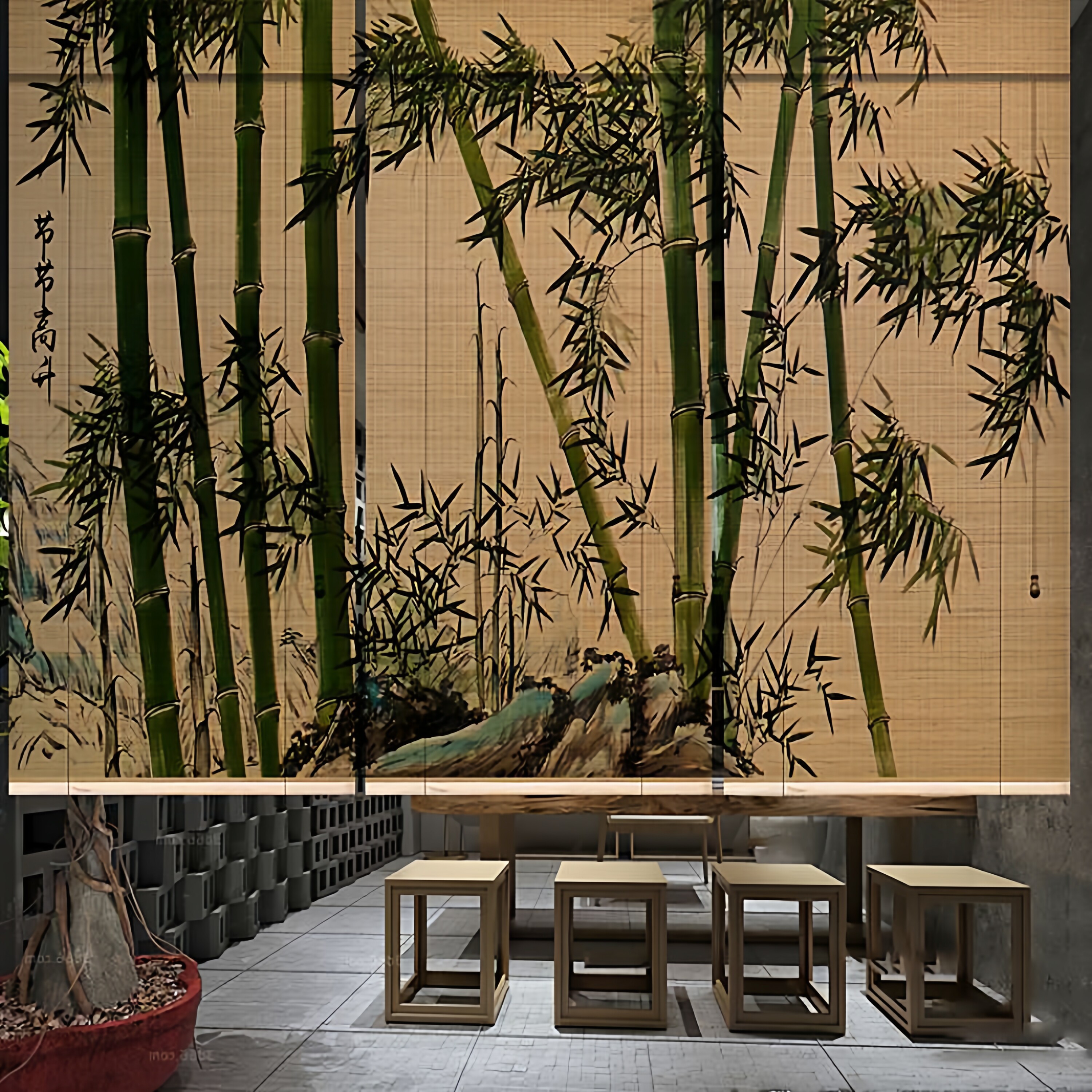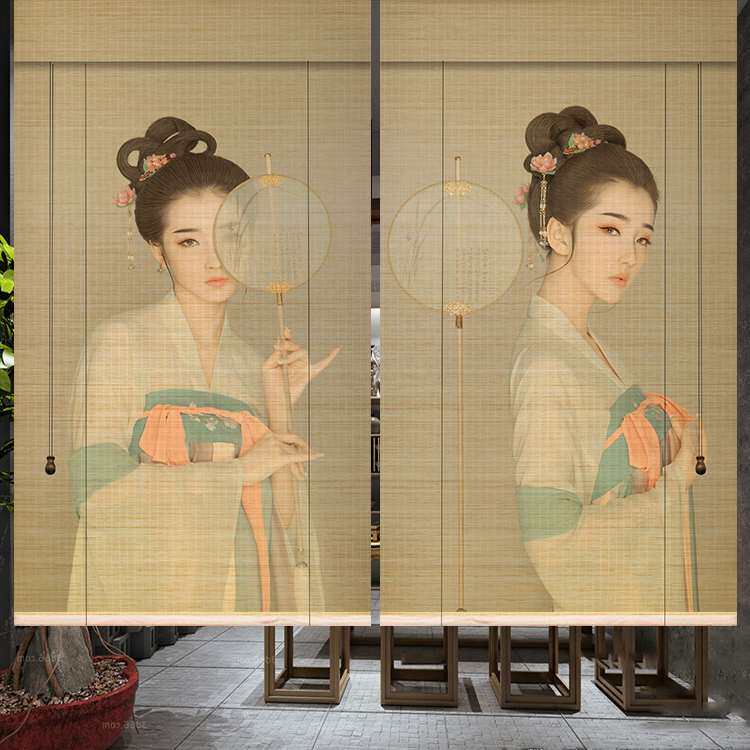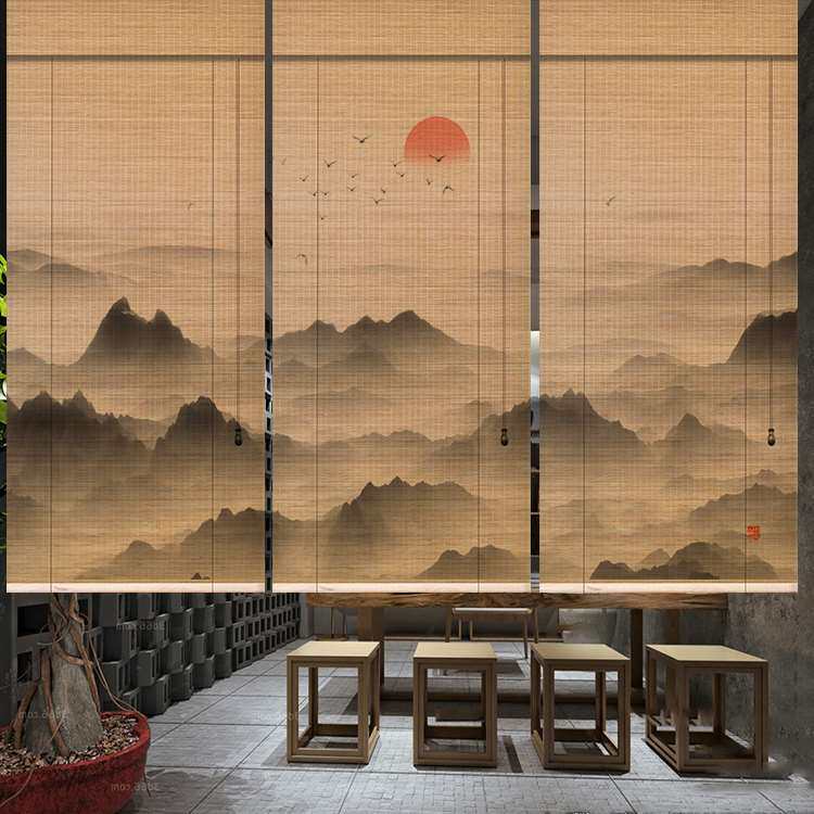 淘宝头层细丝印花竹帘定制卷帘窗帘隔断玄关门帘喷绘书房茶室禅意复古