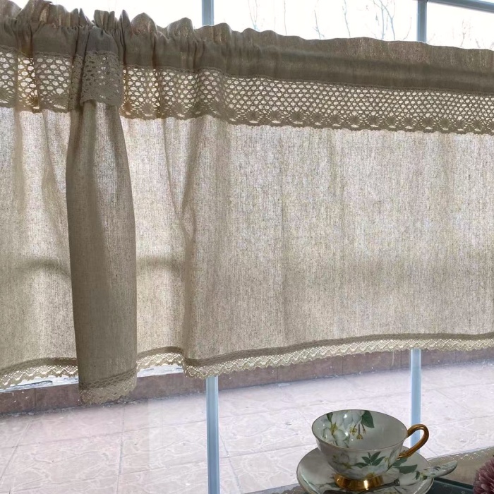 淘法式复古田园乡村花边棉线编织钩针咖啡帘飘窗帘头短帘门帘半帘