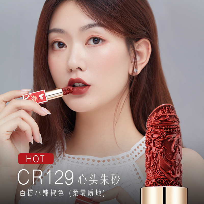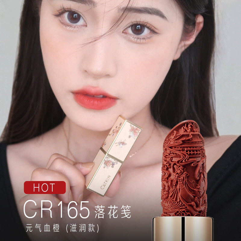 天猫卡婷雕花口红女哑光豆沙奶茶色中国古风唇膏套装小众品牌新年礼物