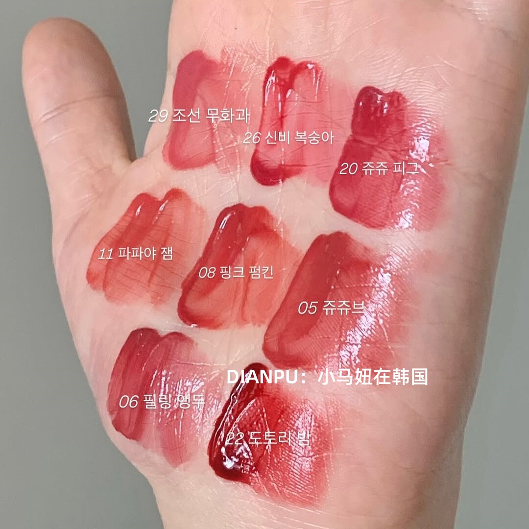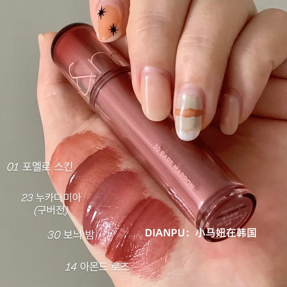 romand全新推出的果汁唇釉唇蜜口红2.0版,以“水光镜面玻璃唇”为灵感,融合高显色度与极致滋润感,打造宛如新鲜果汁浸润的双唇妆效。质地轻盈水润,上唇瞬间成膜,呈现通透饱满的镜面光泽,持久不黏腻。蕴含多种植物精华与保湿成分,深层滋养唇部,告别干燥起皮。色彩饱和度高,一抹即显,从清新粉橘到浓郁浆果,多色可选,适配各种场合。小巧便携设计,轻松补妆,持久锁色长达数小时。romand果汁唇釉2.0,让双唇如玻璃般晶莹透亮,绽放水润诱人光彩,是打造韩系清透水光唇的必备单品。