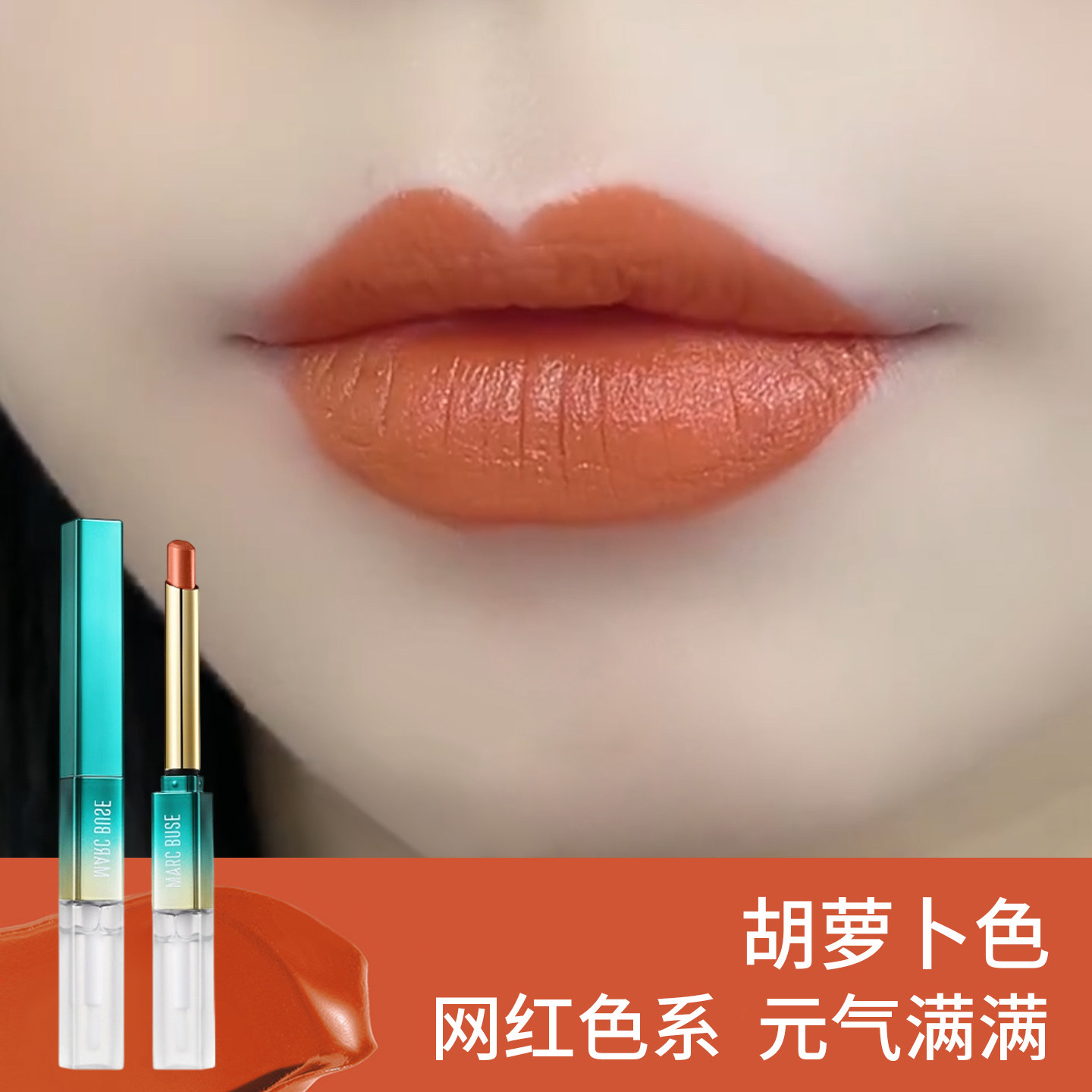 美康粉黛双头口红裸色哑光镜面唇釉滋润不易沾杯不易掉色水光持久