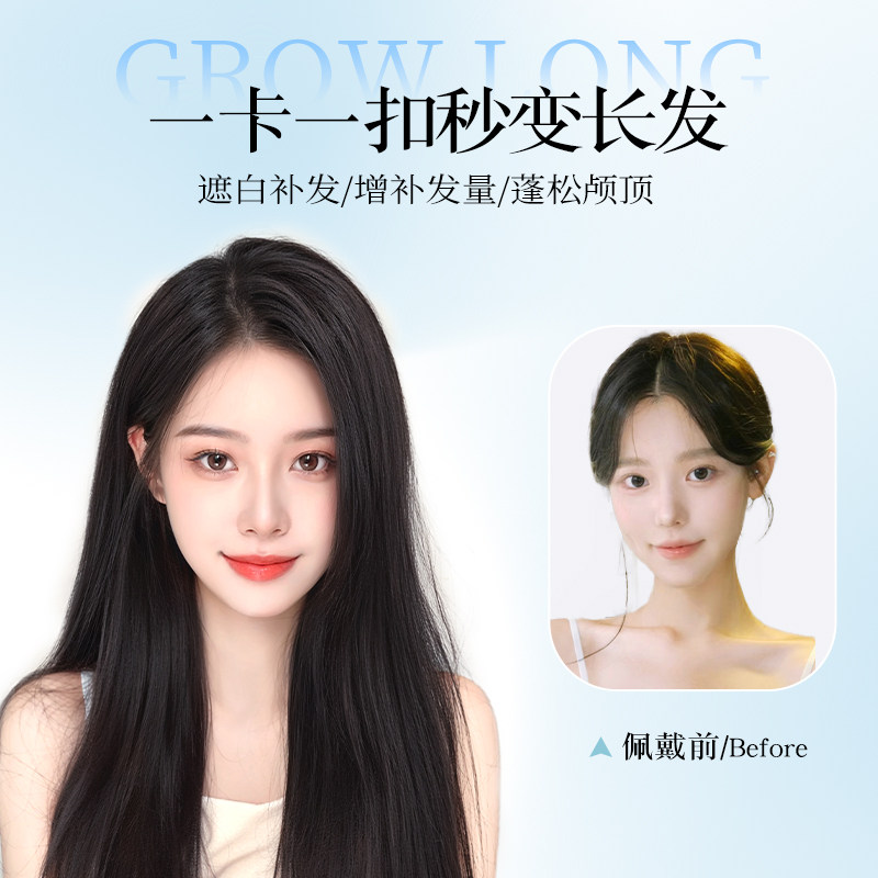 天不用戴发网假发女片头顶仿真发增发量无痕蓬松高颅顶高层次长直发
