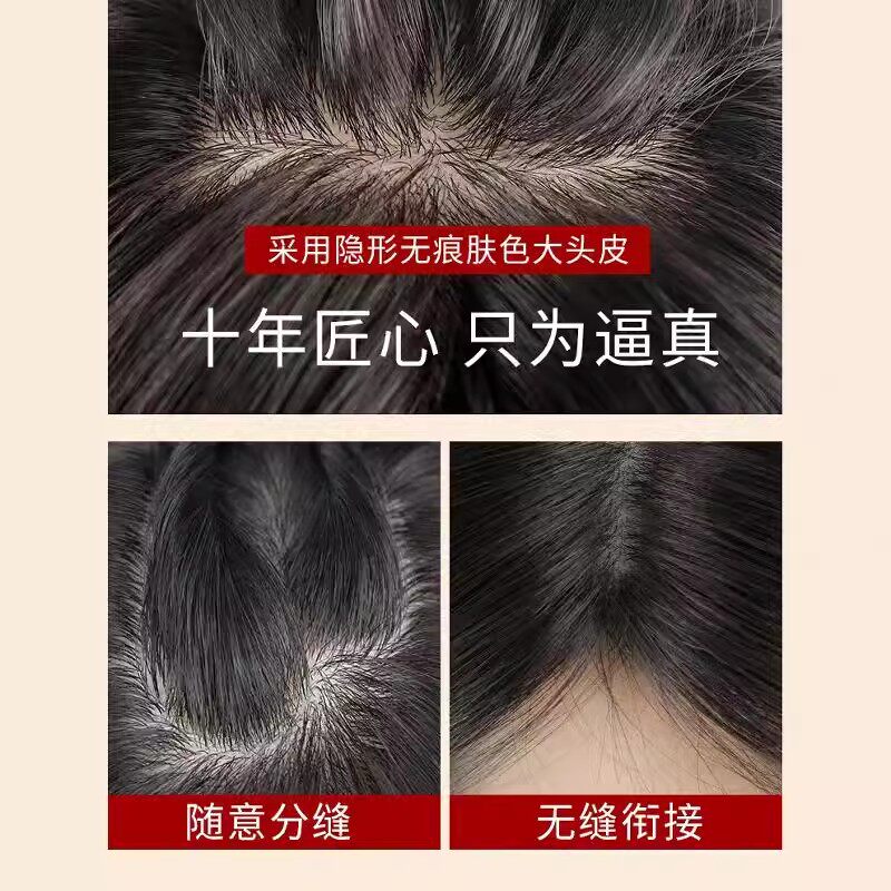 假发片女头顶补发蓬松遮白发轻薄款自然隐形手织一片式全真发发片