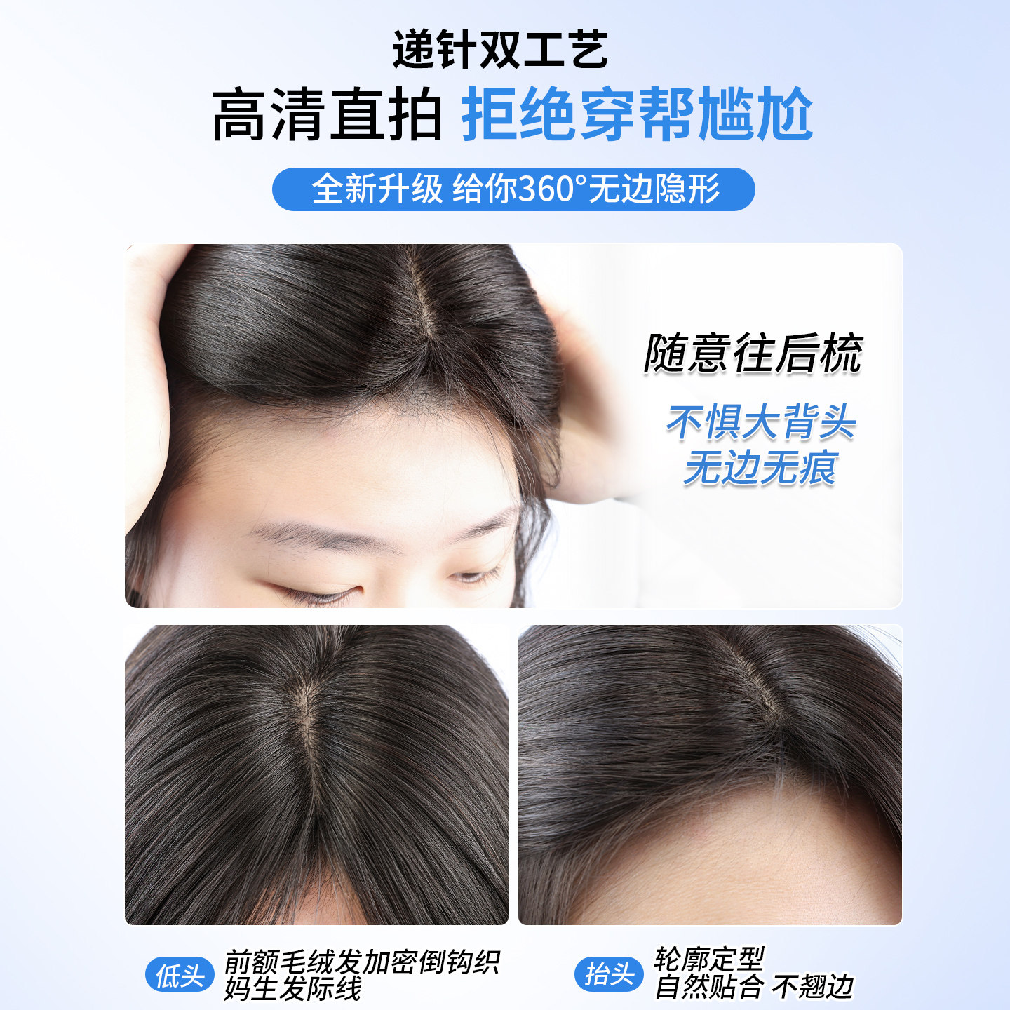 天假发片女头顶垫发片补发蓬松颅顶两侧增发量隐形垫发根小千代真发