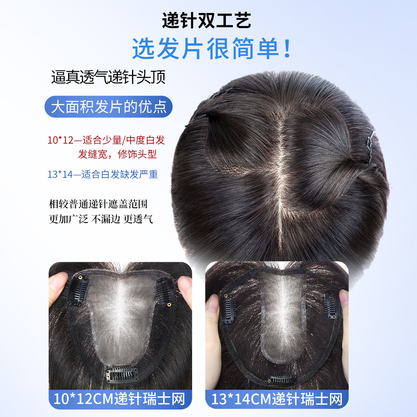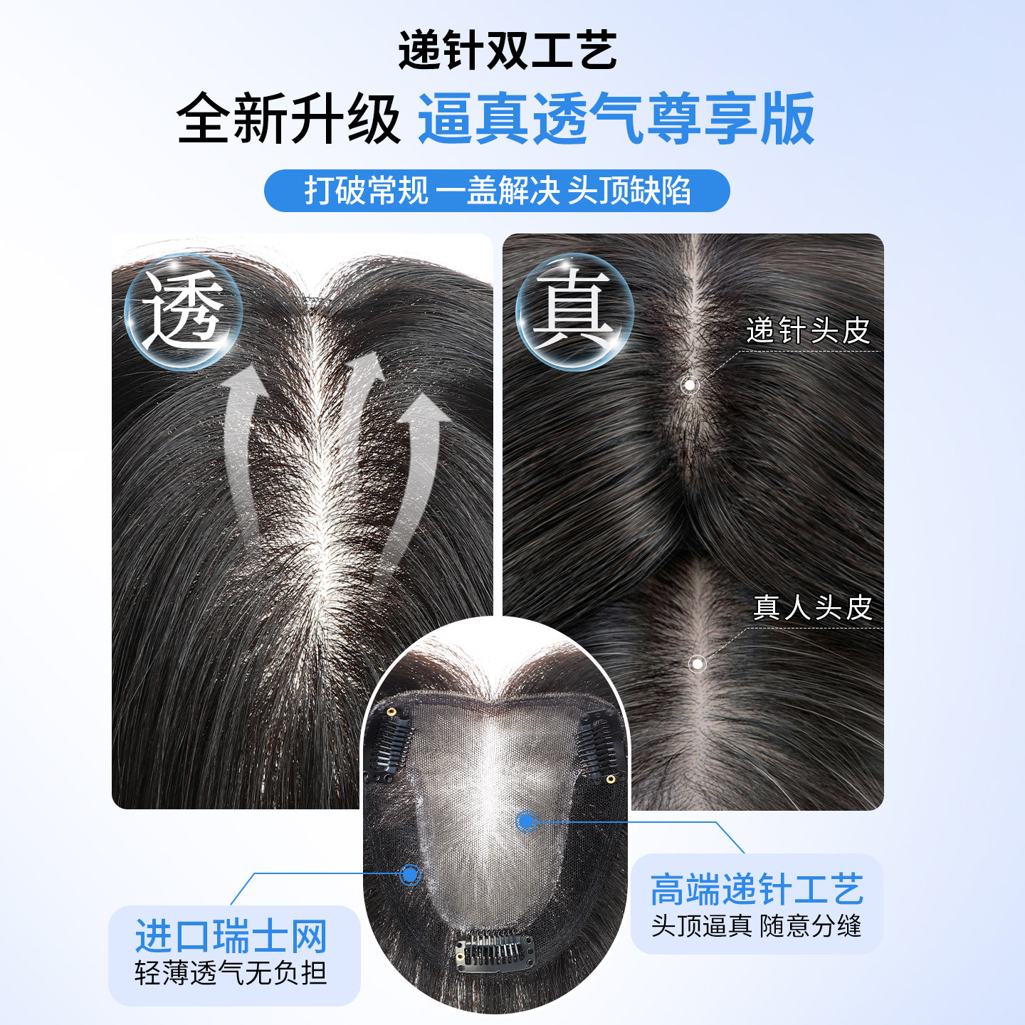 递针假发女片头顶真发遮白发增发量蓬松高颅顶无痕隐形自然补发片