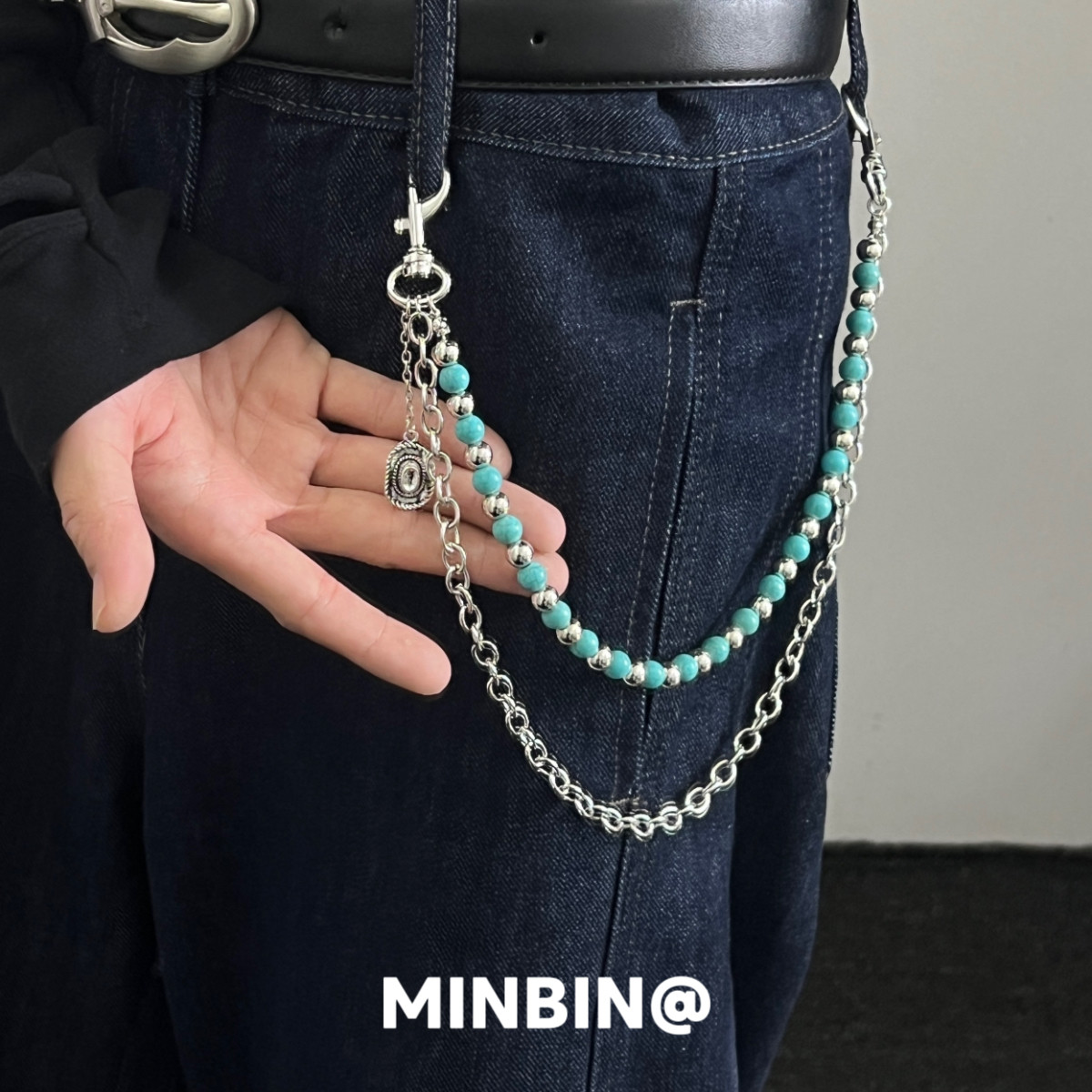淘宝绿松石串珠复古裤链小众嘻哈高级感牛仔裤挂件挂饰朋克腰链配饰潮