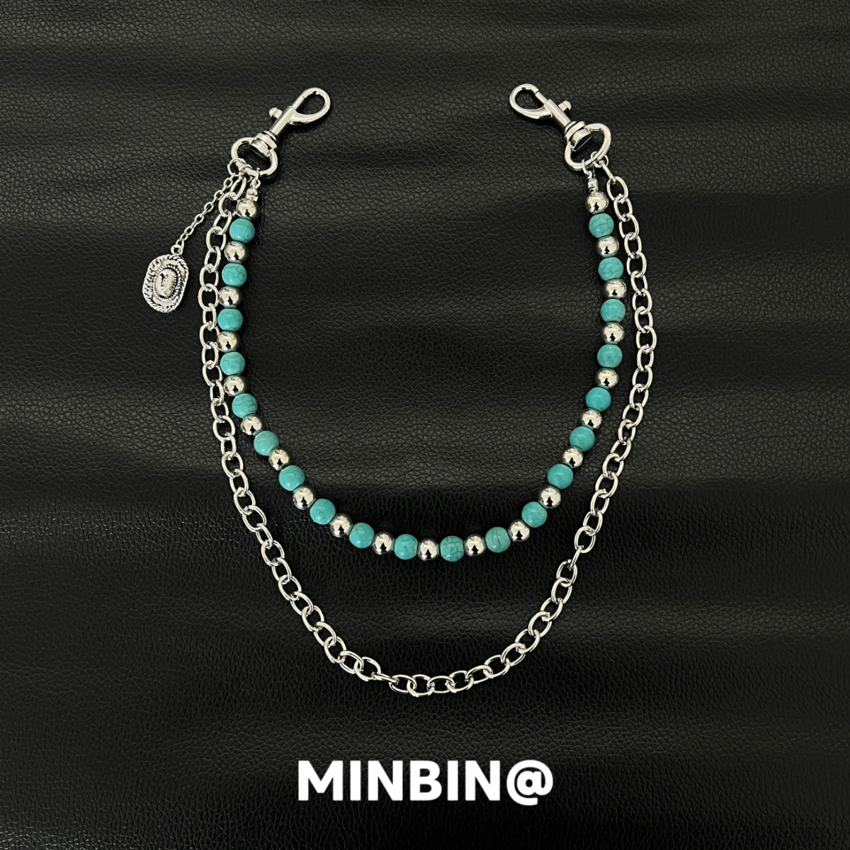 绿松石串珠复古裤链,融合小众嘻哈与朋克美学,打造高级感十足的牛仔裤挂件。精选天然绿松石珠,色泽清透温润,搭配做旧金属链条与复古吊坠,质感出众,细节精致。无论是搭配宽松牛仔裤、工装裤,还是作为腰链点缀,都能瞬间提升整体造型的层次感与个性态度。兼具街头潮流与复古韵味,是追求独特风格的潮人必备配饰。低调中彰显品味,张扬中不失格调,让每一处细节都成为态度的表达,轻松驾驭多种穿搭场景,展现不羁自由的潮流灵魂。