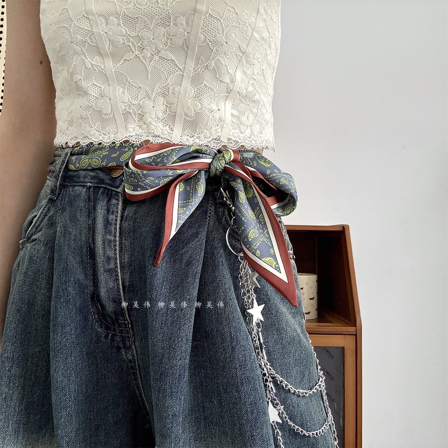 淘宝柳吴伟腰果花丝巾腰带收腰神器高级感皮带女款配牛仔裤子裤链配饰
