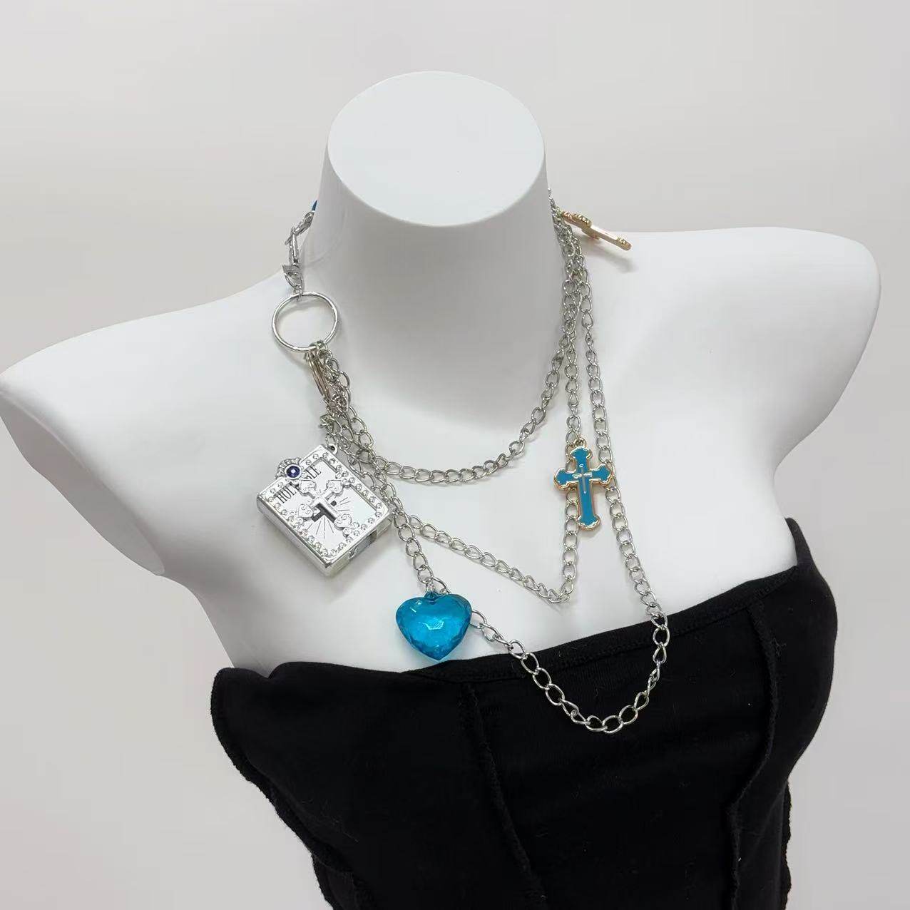 欧美跨境嘻哈朋克风金属腰链个性流行爱心亚克力裤链韩版ins风