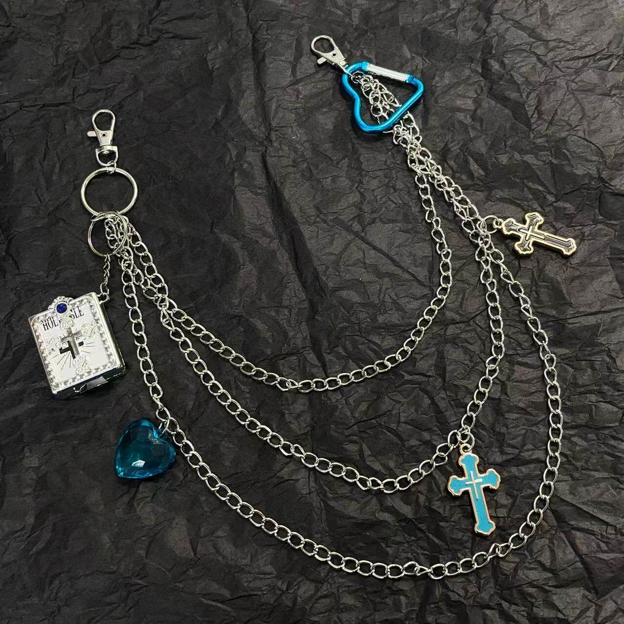 淘欧美跨境嘻哈朋克风金属腰链个性流行爱心亚克力裤链韩版ins风
