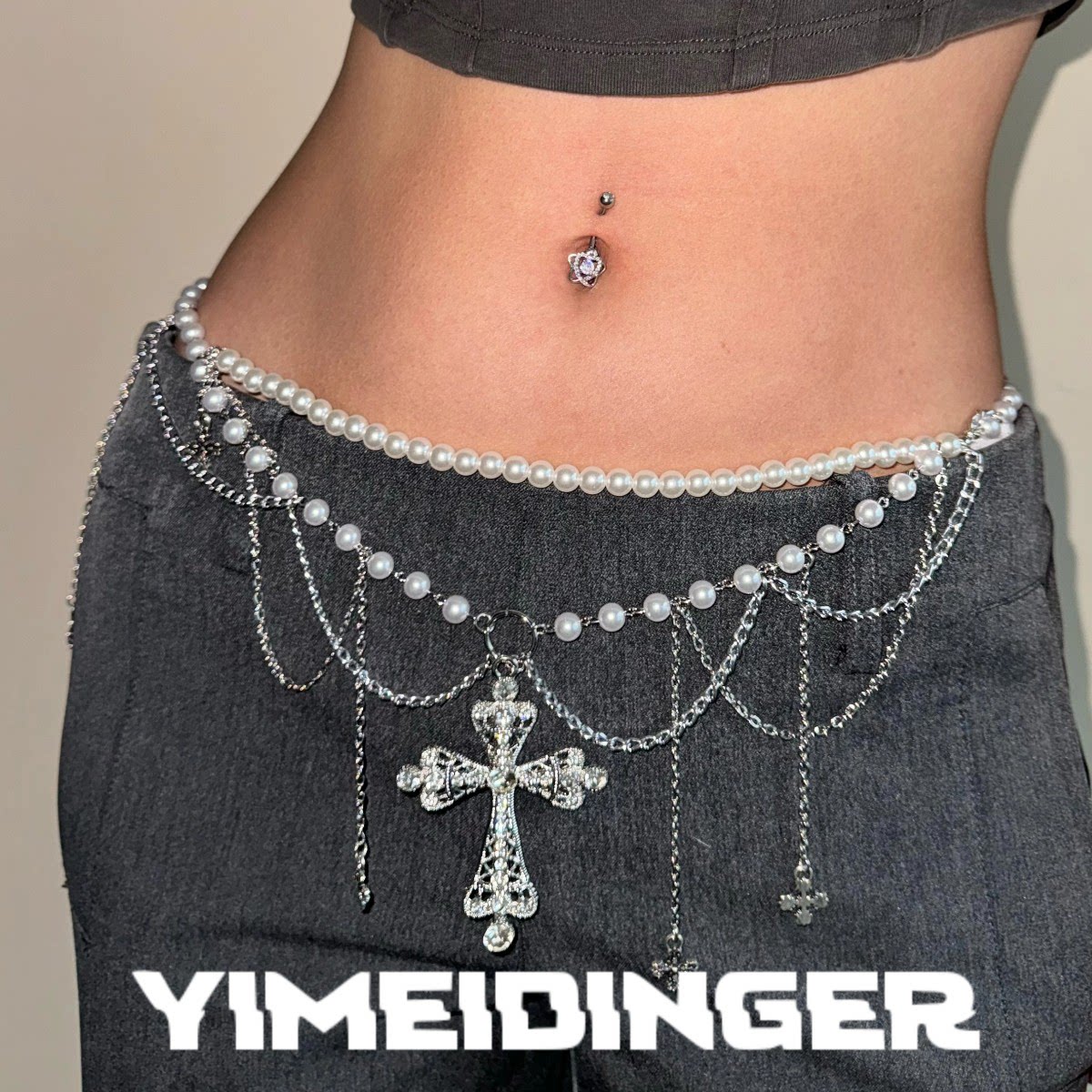 淘宝十字腰链Y2K千禧辣妹街头珍脐钉腰环肚皮舞裤链裙链哥特朋克风