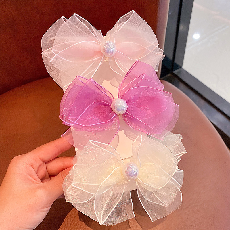 淘小喵爪手作进口大号梦幻粉色曲边纱拖尾成人儿童蝴蝶结发饰弹簧夹