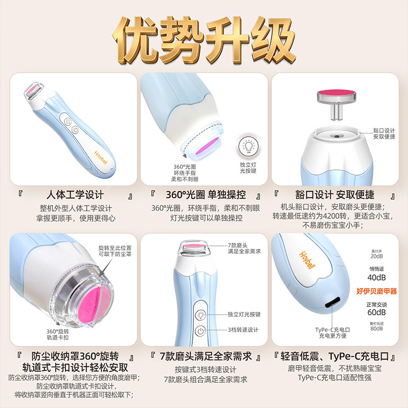 天猫好伊贝电动磨甲器婴儿新生专用指甲打磨器宝宝指甲剪刀安全充电款