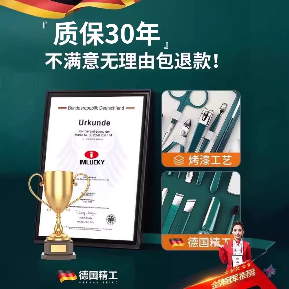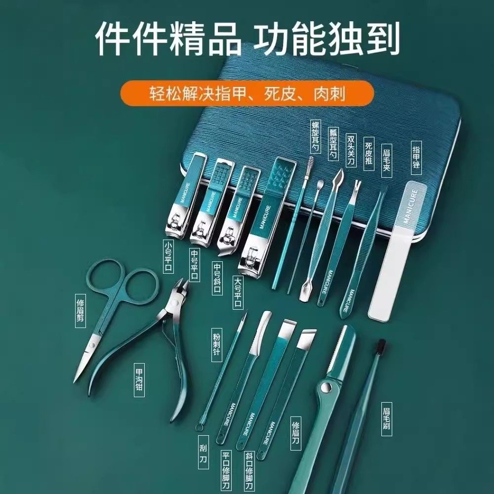 德国进口材质指甲剪套装,精选高品质不锈钢,硬度高、耐腐蚀,持久锋利不生锈。专为甲沟护理设计,甲沟专用指甲剪刀采用精密工艺,刀口锋利精准,轻松修剪难处理部位,避免嵌甲困扰。配套原装修脚刀,贴合脚部轮廓,安全高效去除死皮与厚角质。整体人体工学设计,握感舒适,操作省力。套装收纳便捷,居家出行皆宜。严格遵循德国制造标准,品质可靠,经久耐用,是您日常手足护理的理想之选,呵护指尖健康,从专业工具开始。