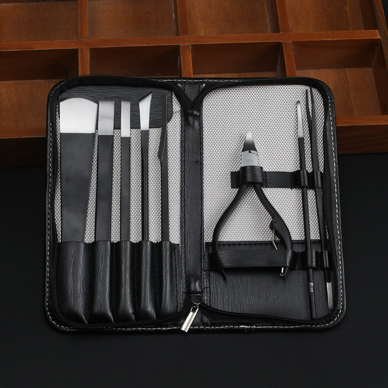 足之有道专业修脚刀套装,源自扬州“三把刀”传统技艺精髓,专为技师精心打造。其中炎甲沟修脚指甲工具单件,采用优质不锈钢材质,刀刃锋利耐用,精准贴合甲沟弧度,有效处理嵌甲、厚甲、灰指甲等问题,操作安全高效。人体工学手柄设计,握感舒适,防滑耐磨,长时间使用不易疲劳。结合现代工艺与传统修脚技法,确保修治过程精准、卫生、无痛。适用于足疗店、修脚馆及专业技师日常操作,是守护足部健康的得力助手。足之有道,传承匠心,让每一双脚都享受专业呵护。