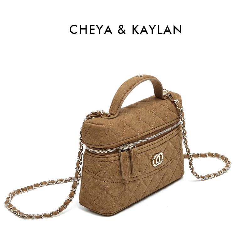 淘宝CheyaKaylan小香风链条饭盒包2026新款磨砂皮百搭单肩斜挎手提包