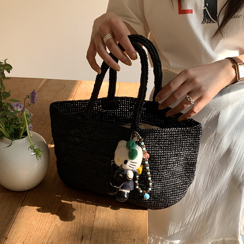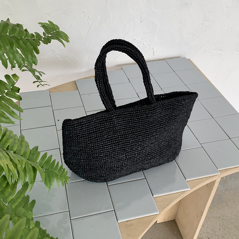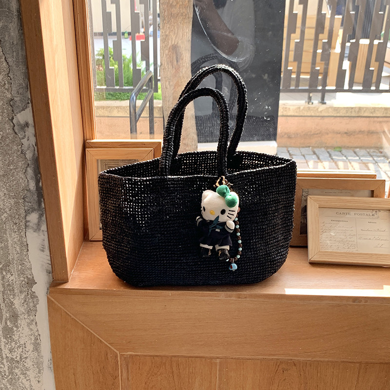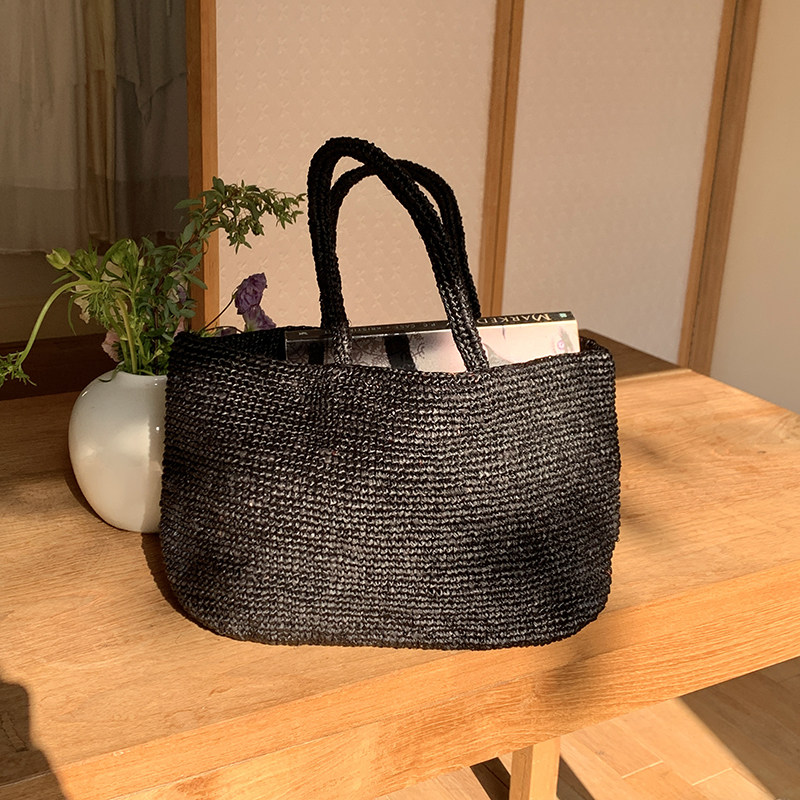 淘宝日系高级拉菲草编织包包女夏季黑色手提包度假沙滩包手拎包托特包
