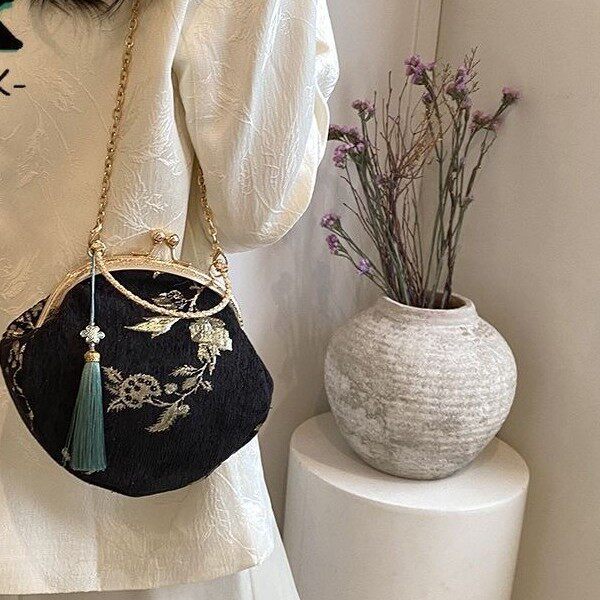 这款新中式国风汉服包包,融合传统美学与现代设计,成为当下女性追捧的时尚单品。采用精致刺绣、流苏装饰与金属链条,搭配复古口金包口,既典雅又实用。包身选用优质面料,质感细腻,色彩温润,完美适配汉服穿搭,亦可轻松驾驭日常通勤、约会等场合。斜挎、手提两用设计,链条可调节,满足不同身高与风格需求。百搭性强,无论是搭配旗袍、襦裙,还是现代连衣裙,都能凸显东方韵味与个性气质。作为2024年超火新款,它不仅是一件配饰,更是文化自信的时尚表达,深受年轻女性喜爱。