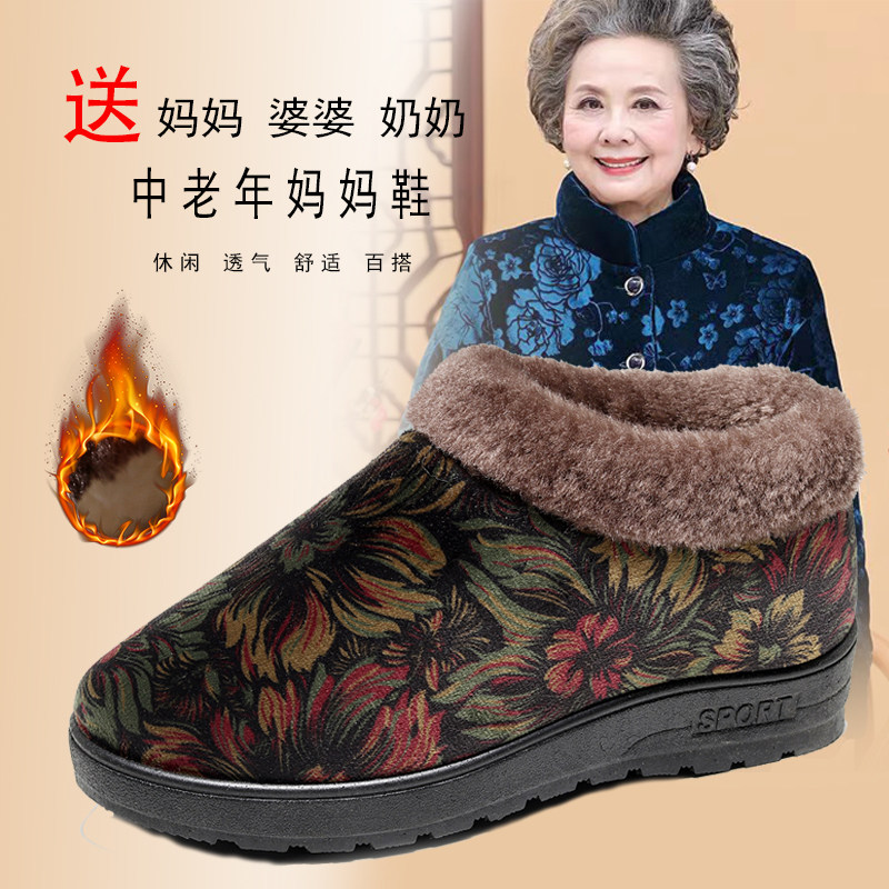 天老北京布鞋女冬加绒加厚羊毛防滑老人奶奶老太太妈妈保暖棉鞋新款