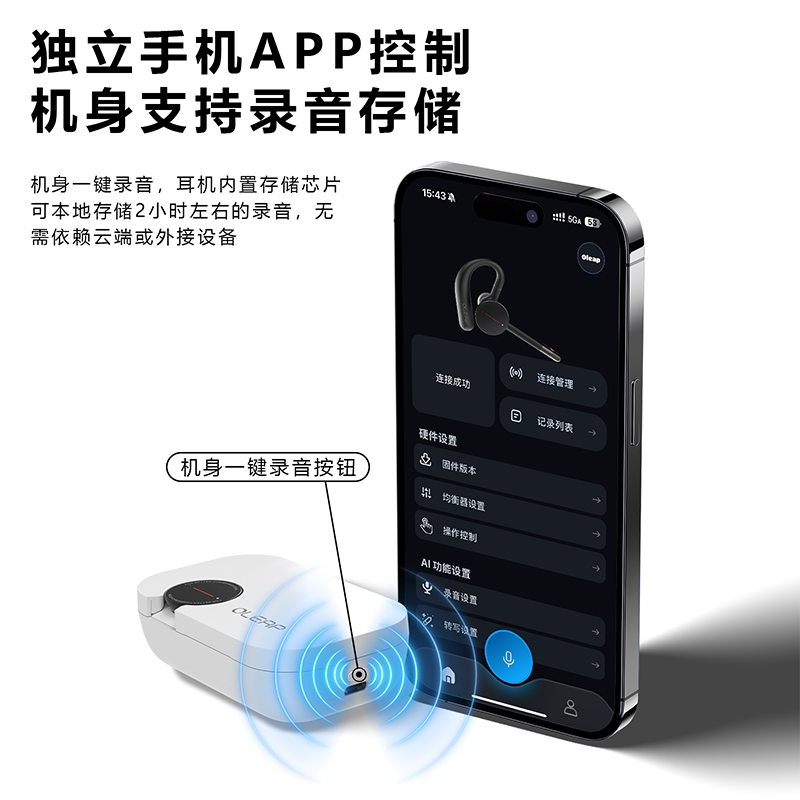 Oleap黄鹂智声是一款专为高效通话设计的无线挂耳式蓝牙耳机,融合AI话务转写与ENC环境降噪技术,精准分离人声与背景噪音,确保通话清晰流畅。其智能语音识别系统可实时转写通话内容,提升办公效率。采用人体工学挂耳设计,佩戴稳固舒适,适合长时间使用。搭载高性能电池,支持超长续航,满足全天候工作需求。无论是远程会议、客服沟通还是日常办公,Oleap黄鹂智声都能提供卓越的音频体验,是智能办公与专业通话的理想之选。