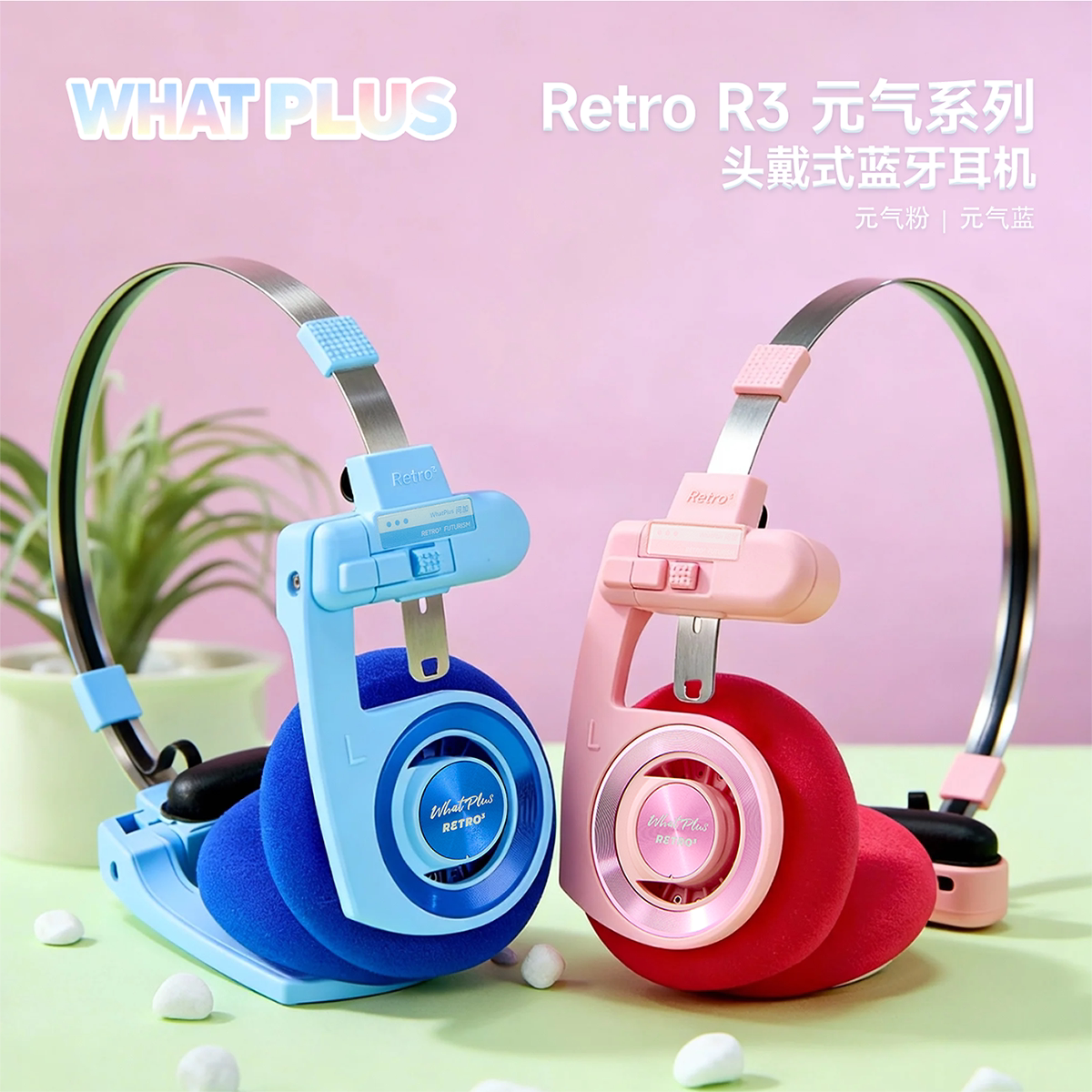 天猫WhatPlus问加 R3元气系列 复古头戴无线蓝牙耳机运动松弛感滑雪