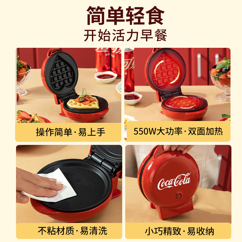 天猫可口可乐早餐机家用全自动加热小型三明治华夫饼机多功能烤面包机