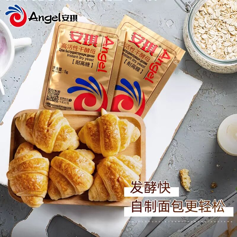安琪面包酵母耐高糖高活性干酵母,专为面包机及家庭烘焙设计,每包含量5g,使用方便。本品采用先进工艺培育,具有高耐糖性,特别适合制作甜面包、吐司等含糖量较高的面团,发酵稳定高效。酵母活性强,起发快,能有效提升面团膨胀度,使成品组织细腻、口感松软。无需预先活化,可直接与面粉混合使用,兼容各类面包机程序。储存方便,常温密封保存即可,保质期长。无论是烘焙新手还是资深爱好者,安琪耐高糖酵母都能助力轻松做出专业级美味面包,是家庭厨房不可或缺的优质烘焙原料。