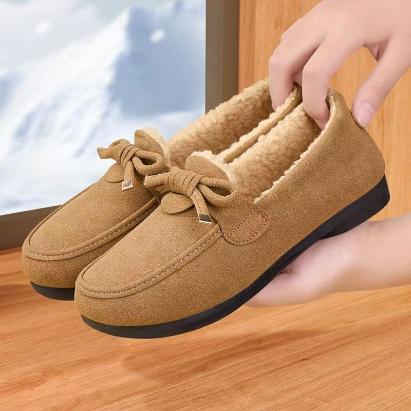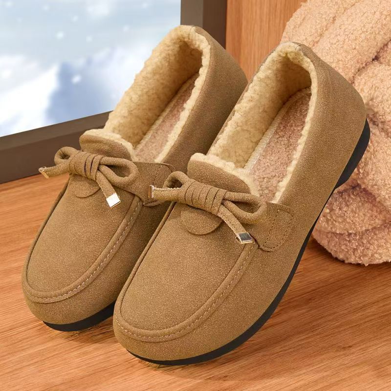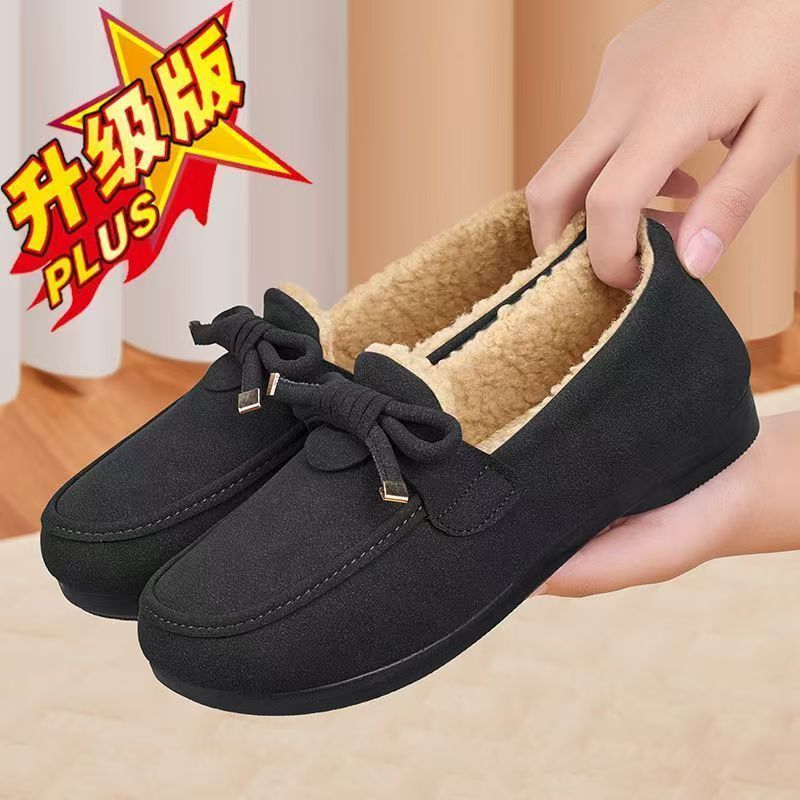 淘宝冬季北京布鞋新款加绒保暖豆豆鞋女加厚平底孕妇防滑时尚毛毛棉鞋