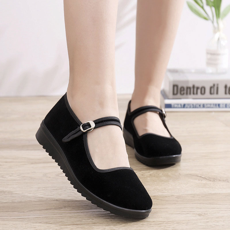 淘宝老北京布鞋中老年平跟夏季浅口女鞋休闲鞋扣带酒店工作鞋广场舞鞋