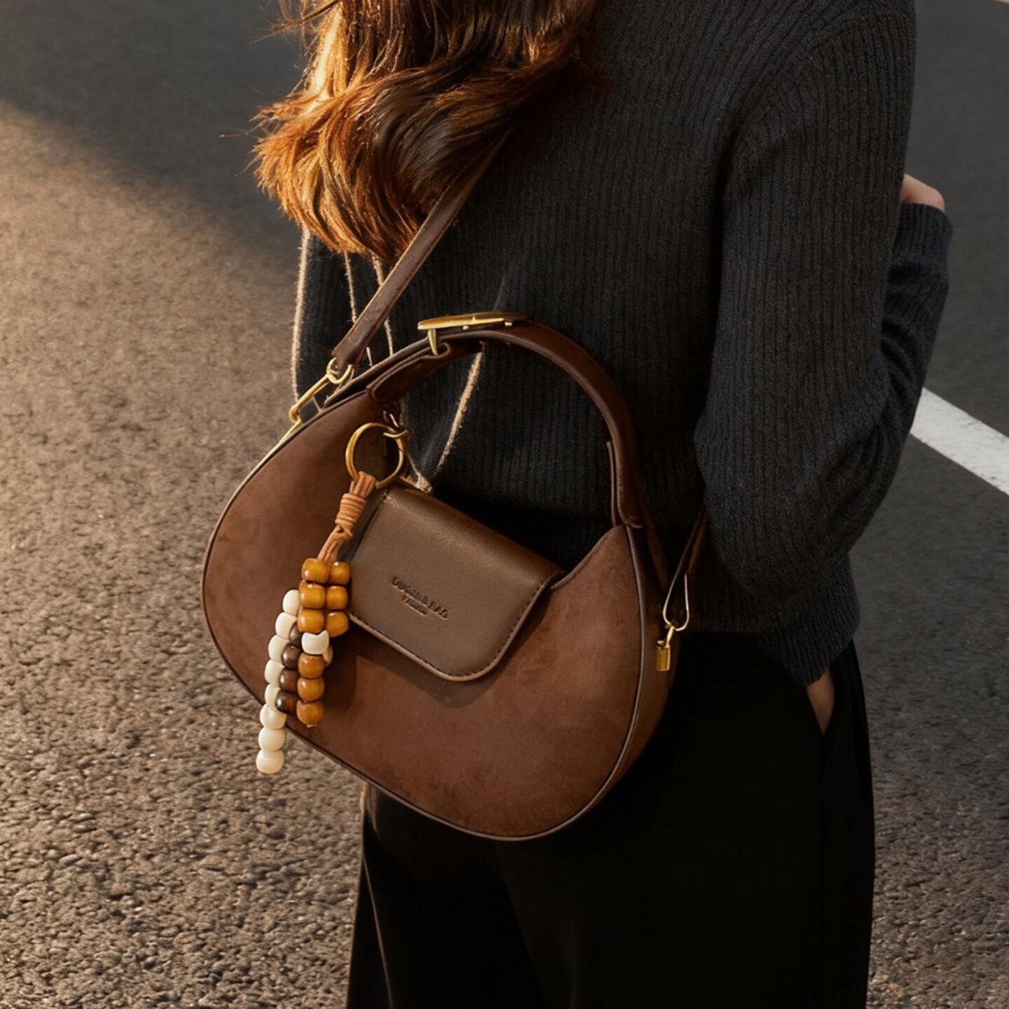 2026年秋冬新款复古小众设计女包强势登场!这款麂皮绒斜挎包以经典月牙包型为灵感,融合现代极简美学,质感柔软、色调高级,轻松驾驭通勤、约会与街拍场景。独特小众设计避免撞包尴尬,复古韵味中透出时髦态度。可斜挎、手提两用,实用与颜值兼具。无论是搭配大衣、针织衫还是连衣裙,都能 instantly 提升整体造型感。超火ins博主同款,一经推出便成为时尚圈焦点。精选环保麂皮绒材质,耐磨耐看,四季百搭。2026秋冬不可或缺的点睛之笔,让优雅与个性随包而行。