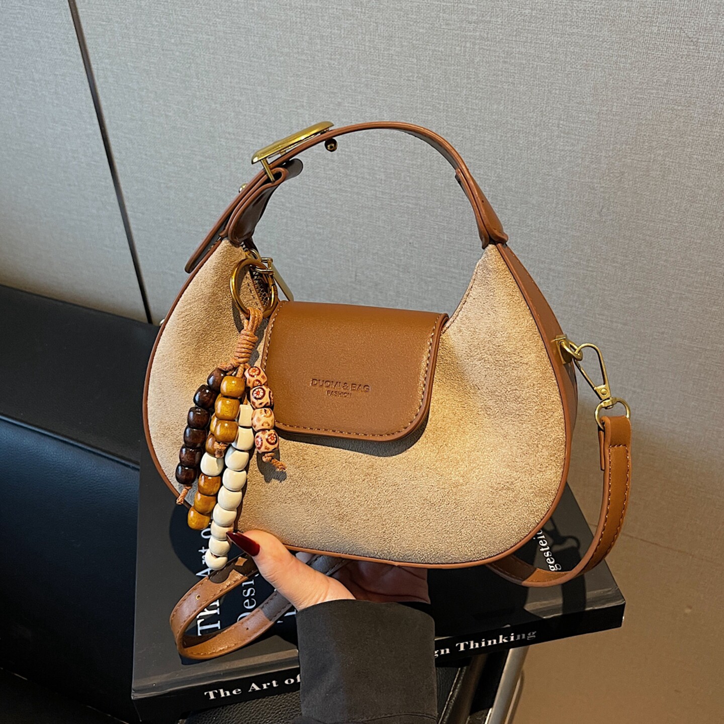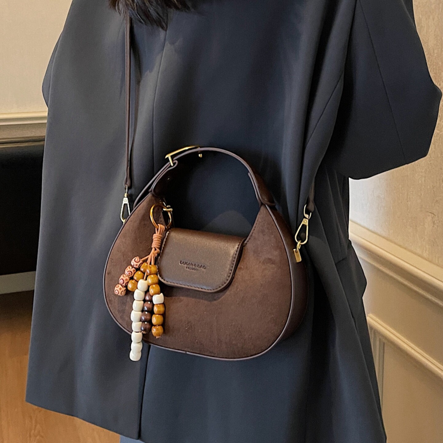 美拉德复古麂皮绒包包女秋冬通勤单肩腋下月牙包高级感百搭斜挎包