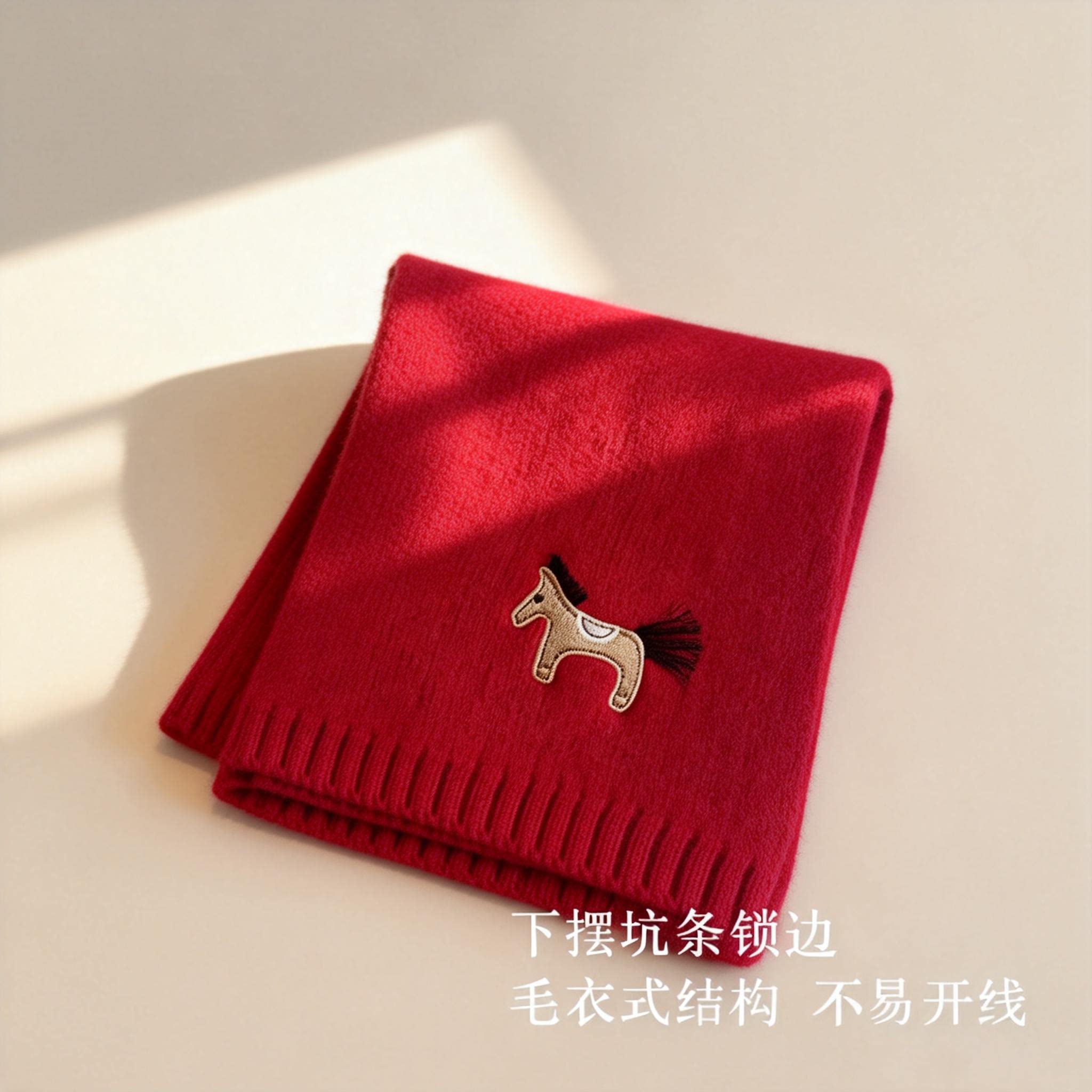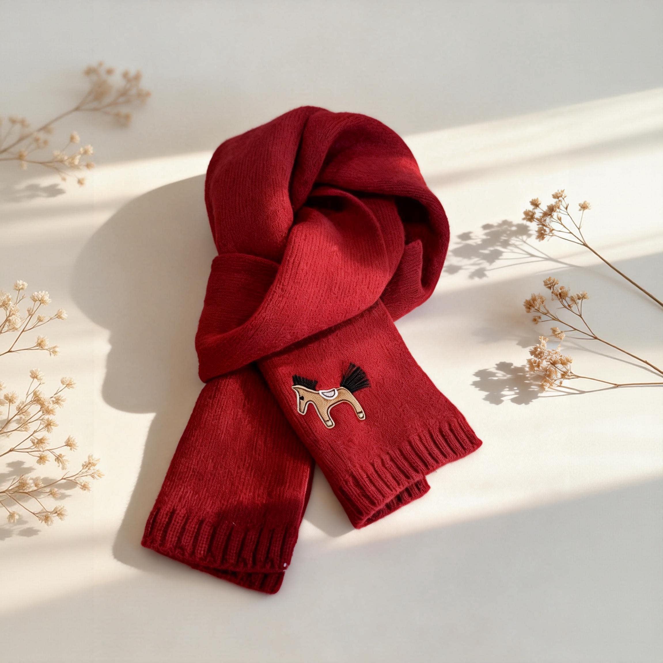 这款100%纯羊毛红色围巾,专为马年本命年女性精心打造,采用优质羊毛材质,柔软亲肤、保暖透气,是冬季出行的理想配饰。围巾以经典正红色为基调,寓意吉祥喜庆,融入精致小马刺绣图案,灵动可爱,彰显独特生肖主题。无论是日常穿搭还是节日出行,都能增添一抹温暖与时尚。精美礼盒包装,送礼自用皆宜,特别适合送给女友、妈妈或闺蜜,传递浓浓心意与祝福。在寒冷的冬日,它不仅是一条围巾,更是一份贴心的关怀与美好的祝愿,让爱温暖整个季节。