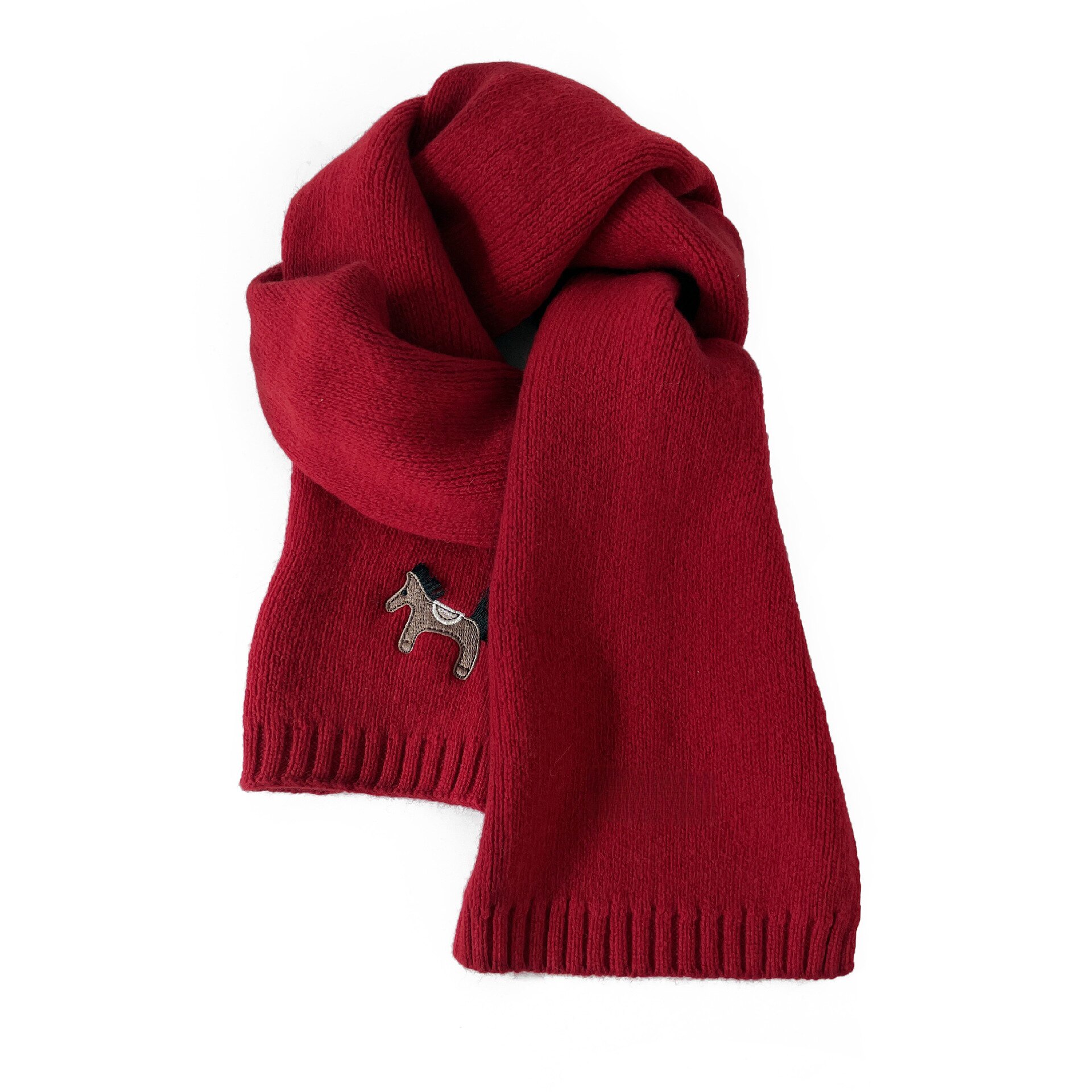 天猫100%羊毛小马刺绣红色围巾女本命年冬季保暖马年围脖礼盒女友送礼