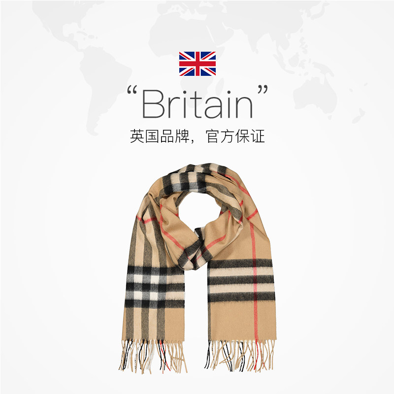 天猫【自营】Burberry博柏利羊绒围巾经典条纹披肩两用节日礼物送女友
