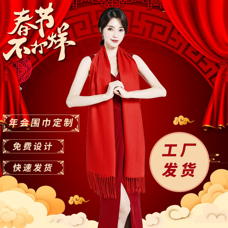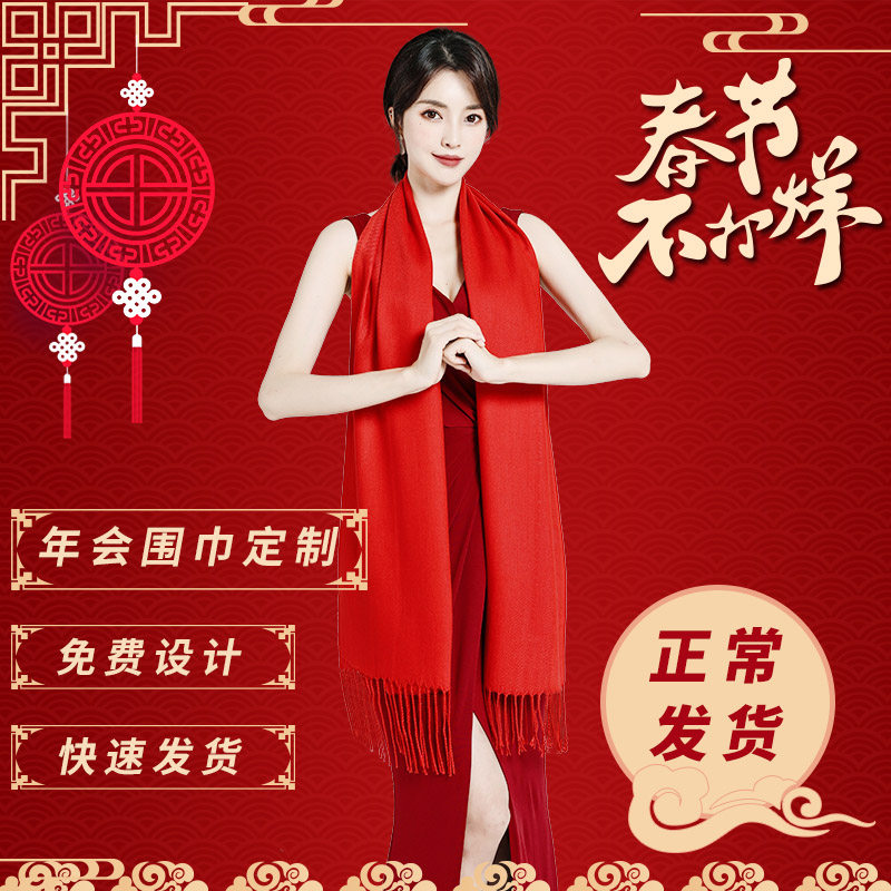 天猫年会红围巾定制印字logo企业活动中国红围巾同学聚会大红色礼品