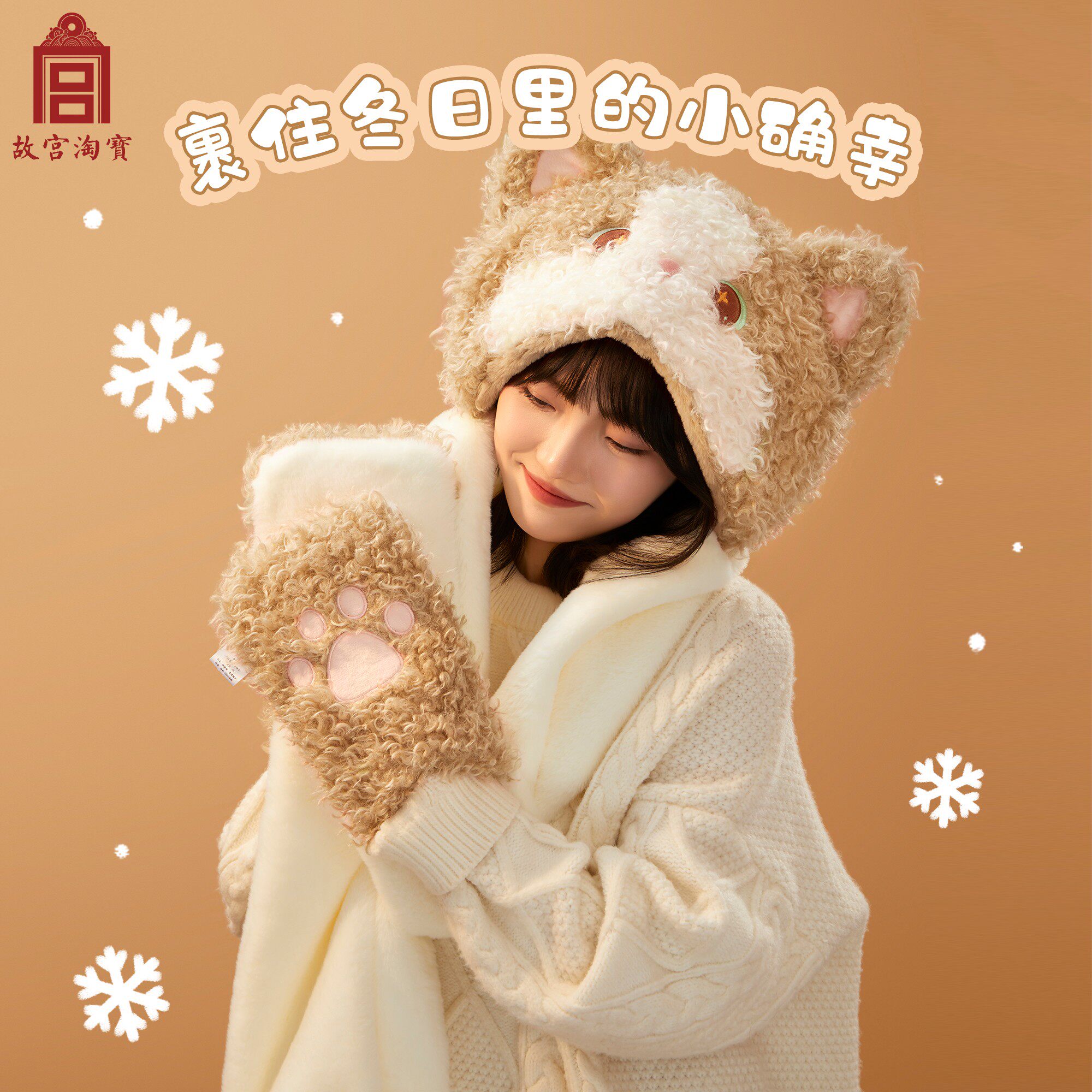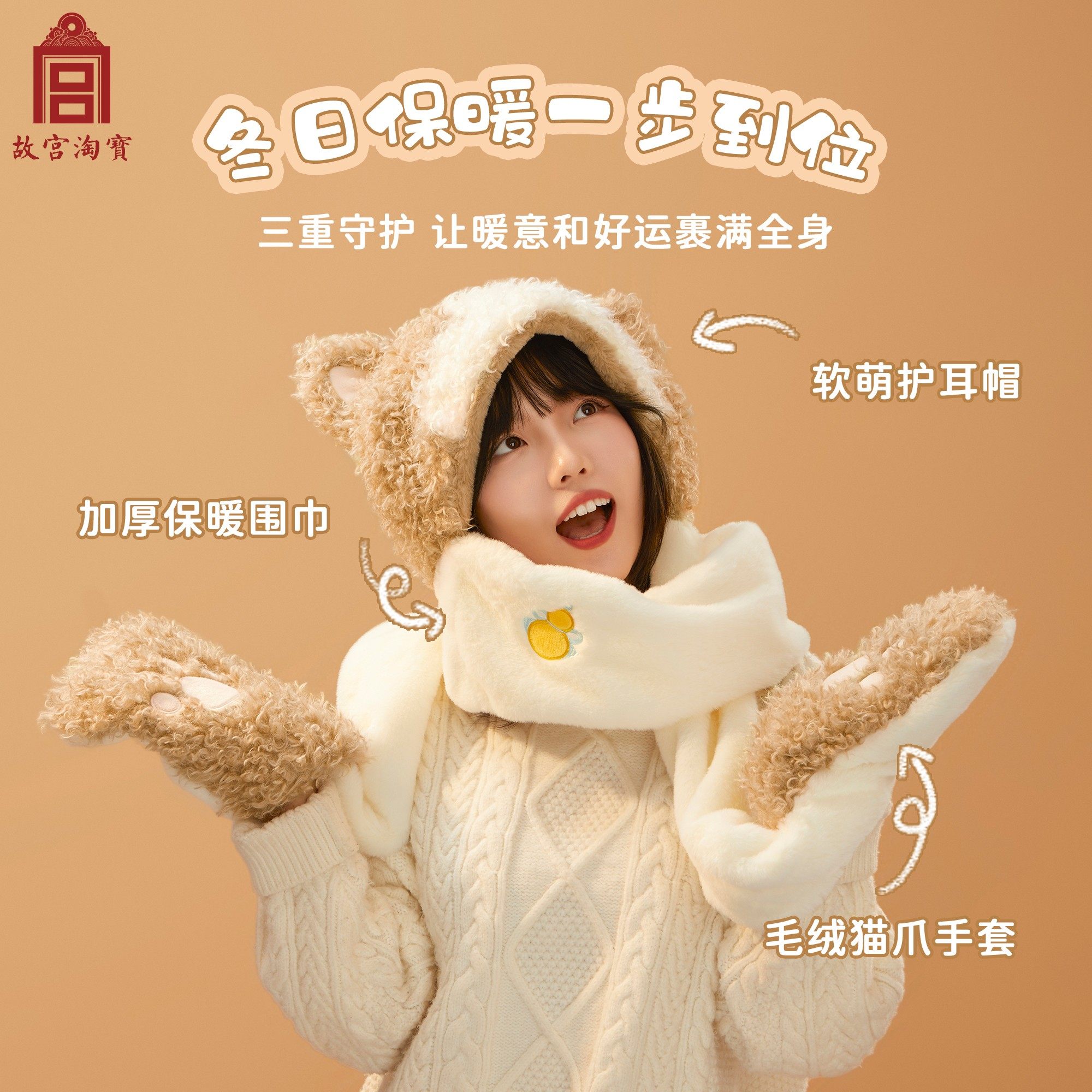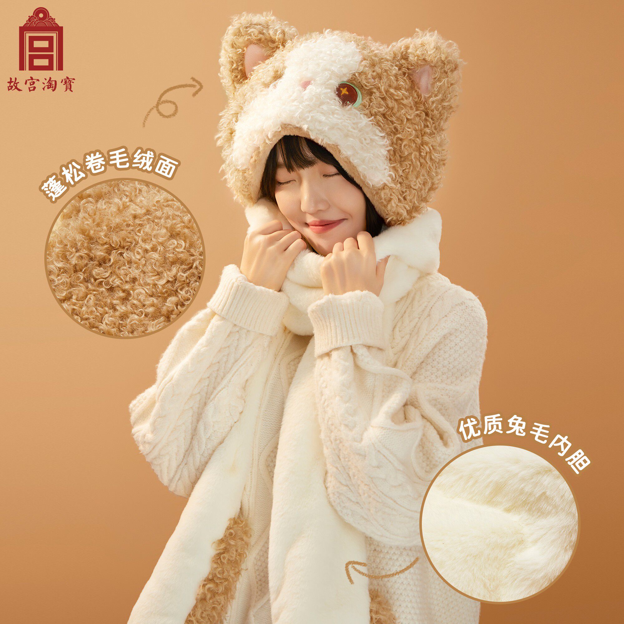 淘宝故宫淘宝|纳福猫连帽围巾手套帽子一体围脖可爱毛绒新年生日礼物