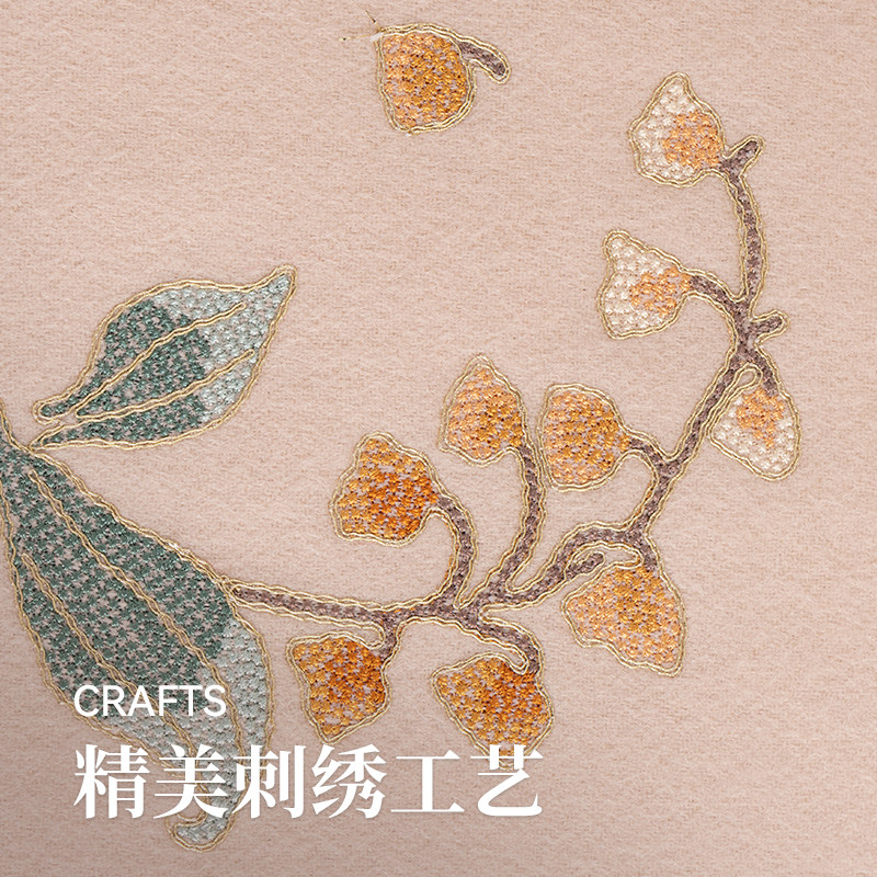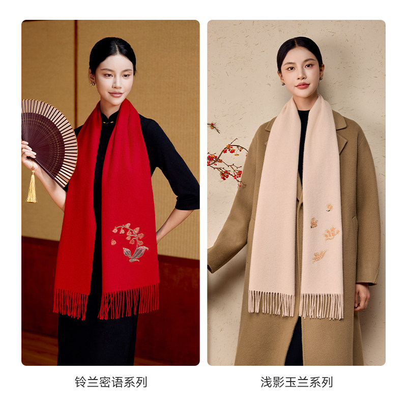 天上海故事秋冬款羊毛围巾加厚保暖防寒花卉刺绣披肩女送长辈礼盒装