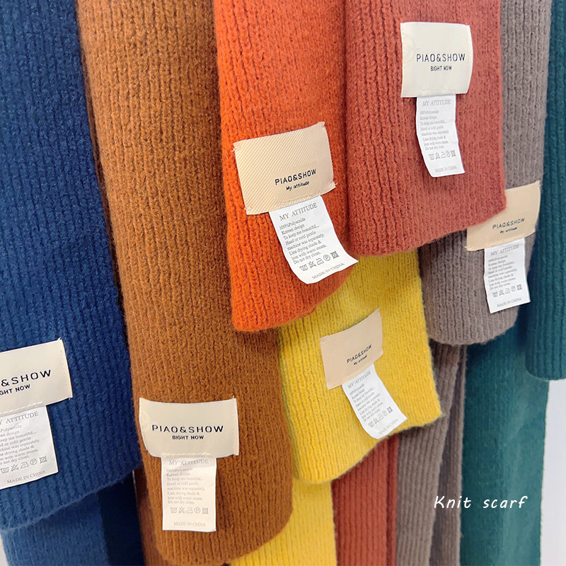 淘宝桃木系列-南瓜橘重磅手工标韩系针织围巾万圣节纯色情侣冬季围脖