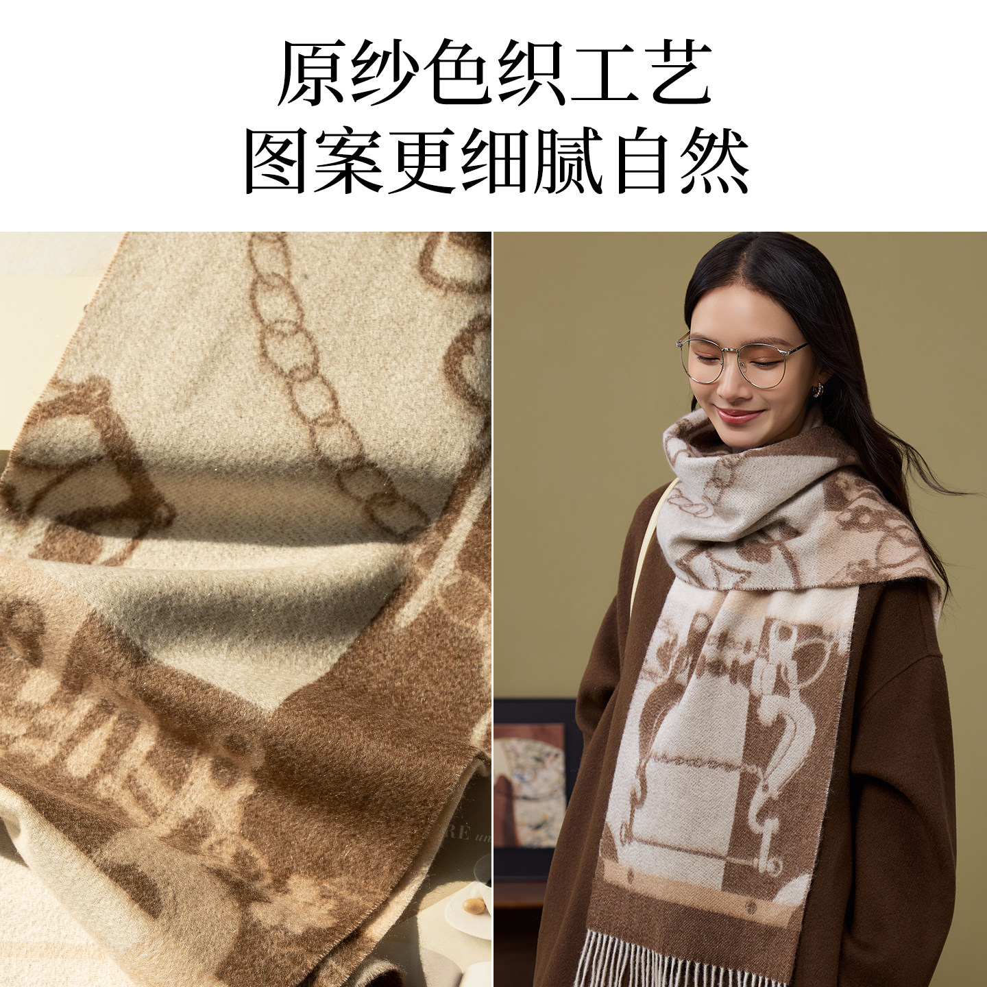 上海故事秋冬新款真桑蚕丝巾羊毛方巾围脖围巾外搭礼盒送长辈礼物