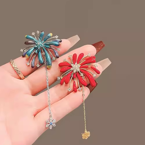 这款红色烟花胸针,以璀璨水钻勾勒出绚烂绽放的烟花造型,搭配灵动流苏设计,闪耀夺目,尽显奢华气质。精选优质合金材质,精工镶嵌,光泽持久,细节精致。无论是搭配西装外套、大衣或礼服,都能瞬间提升整体造型的优雅与时尚感。作为新年礼物,寓意吉祥喜庆,是送予母亲、女友或职场女性的贴心之选。别针设计稳固安全,佩戴便捷,兼具装饰性与实用性。无论是节日聚会、年会庆典还是日常通勤,这款胸花都能成为吸睛亮点,展现独特魅力与不凡品味。
