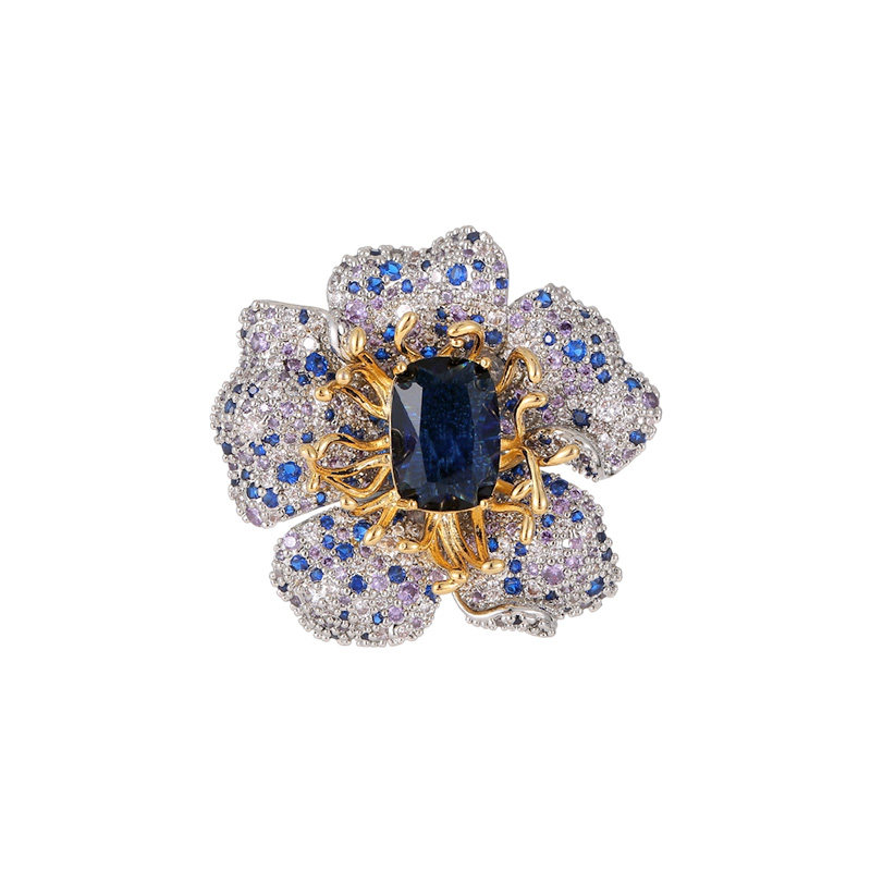 天然蓝色水晶石花朵胸针 高档复古小众设计感 巴洛克珍珠西装别针