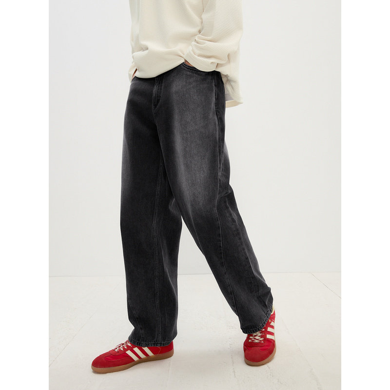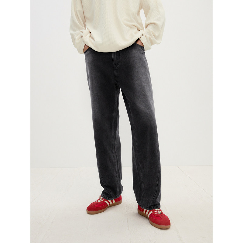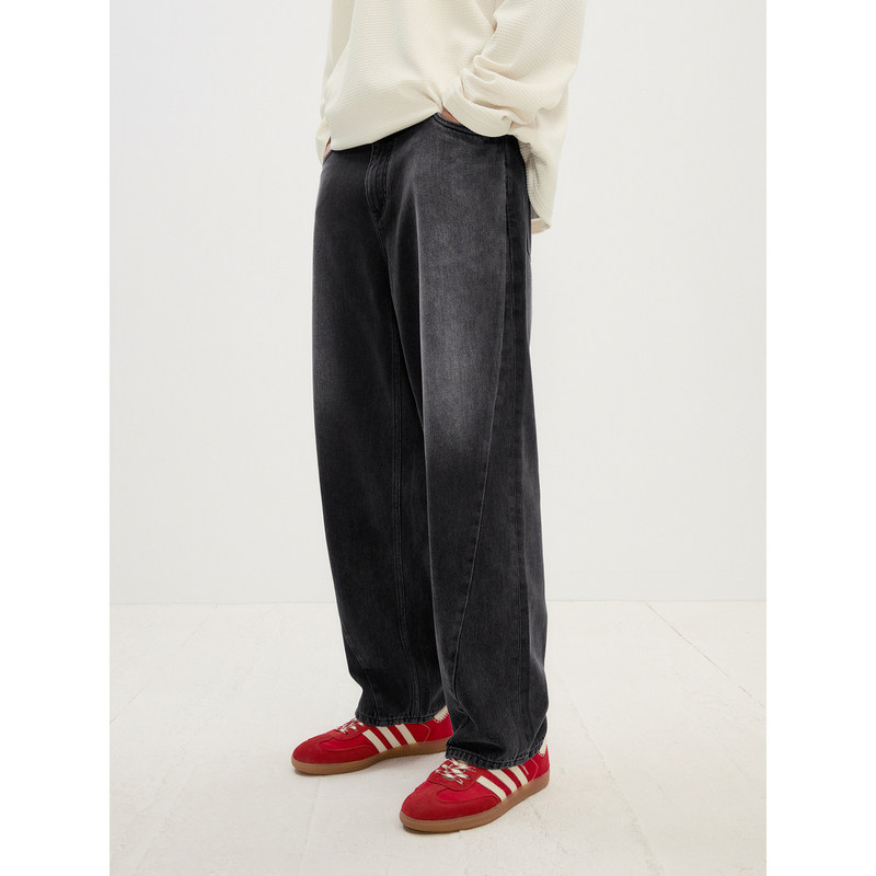 天猫GXG男装 黑色渐变设计牛仔裤宽松直筒长裤男士裤子 2024秋季品