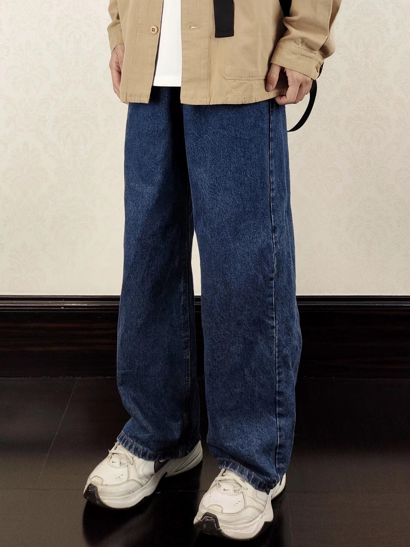 日系复古阔腿长裤宽松直筒小脚哈伦裤子男式大码牛仔裤青年灯笼裤