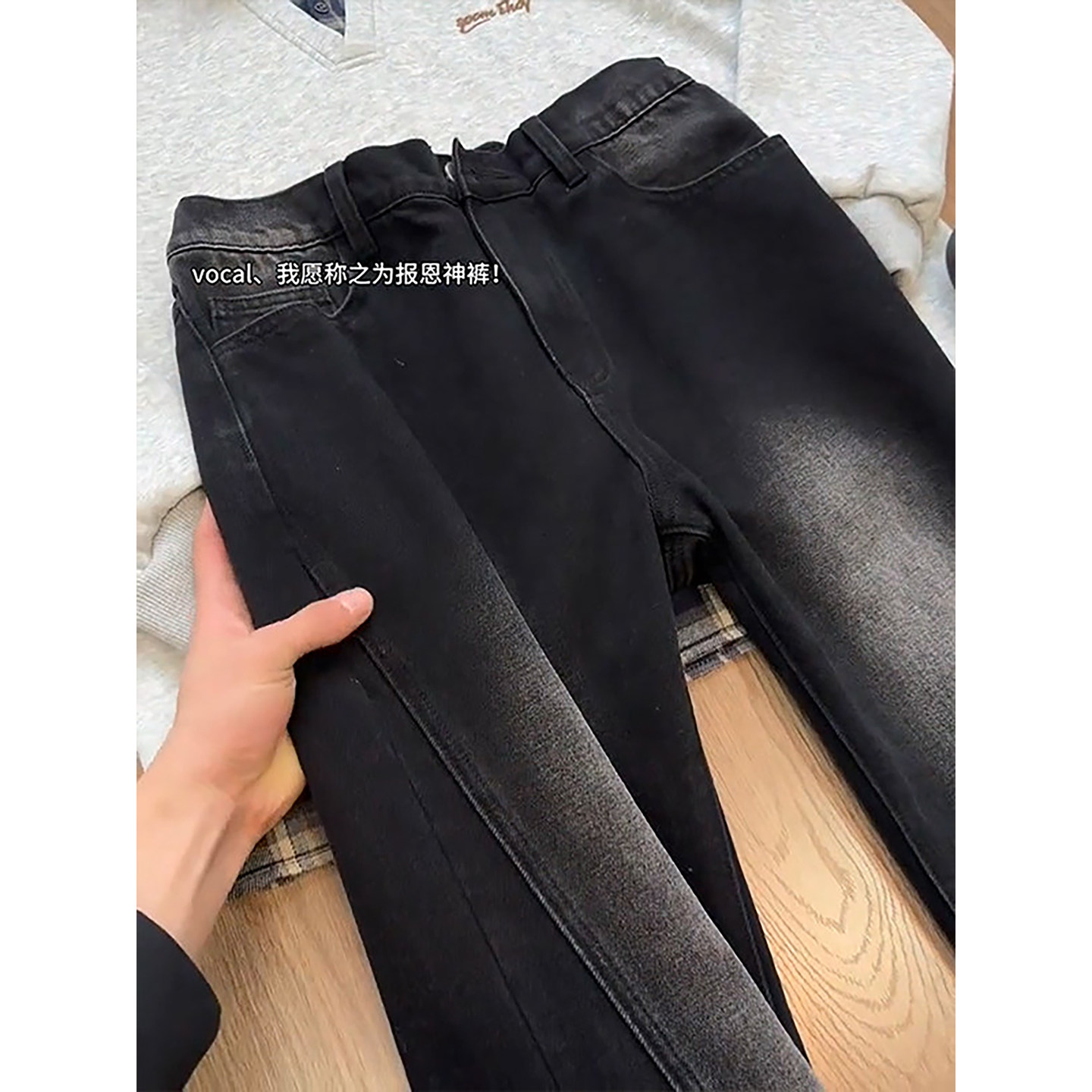 淘HAMB原创 2025秋冬新款美式复古洗水黑牛仔裤男加绒直筒宽松大码
