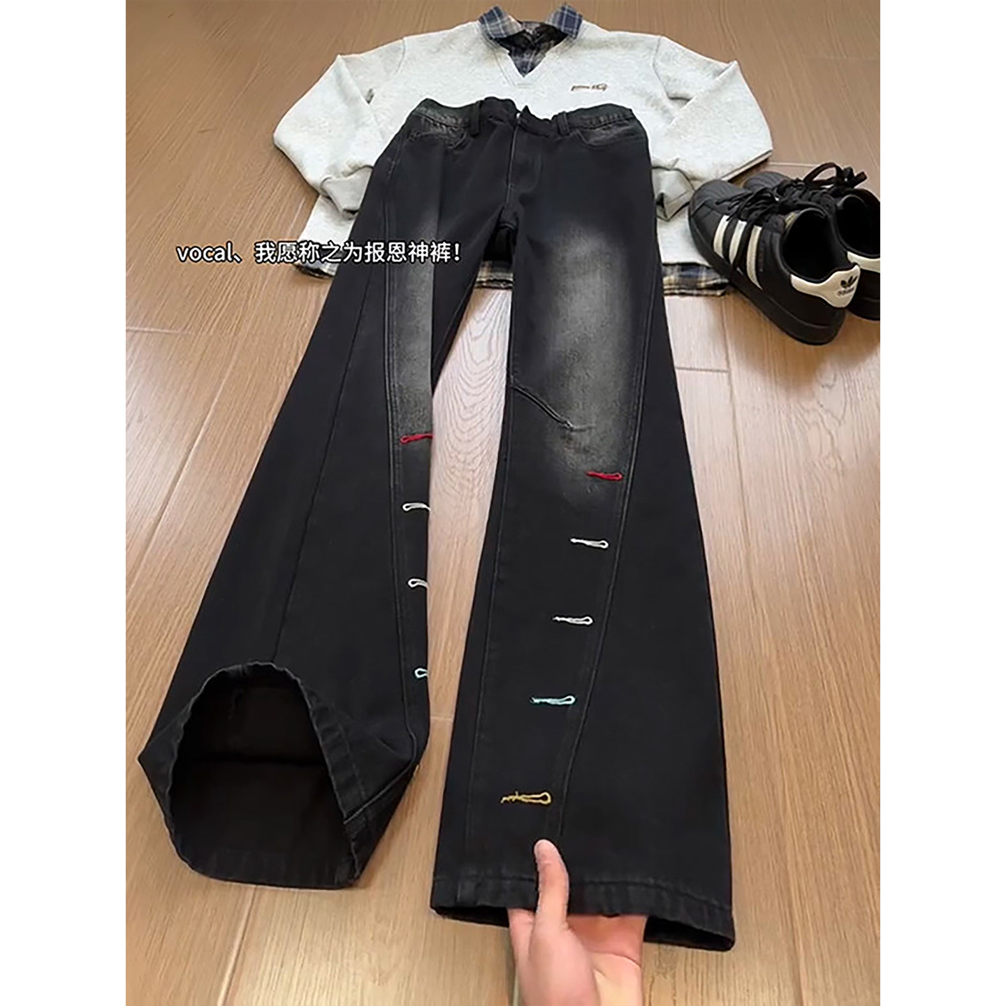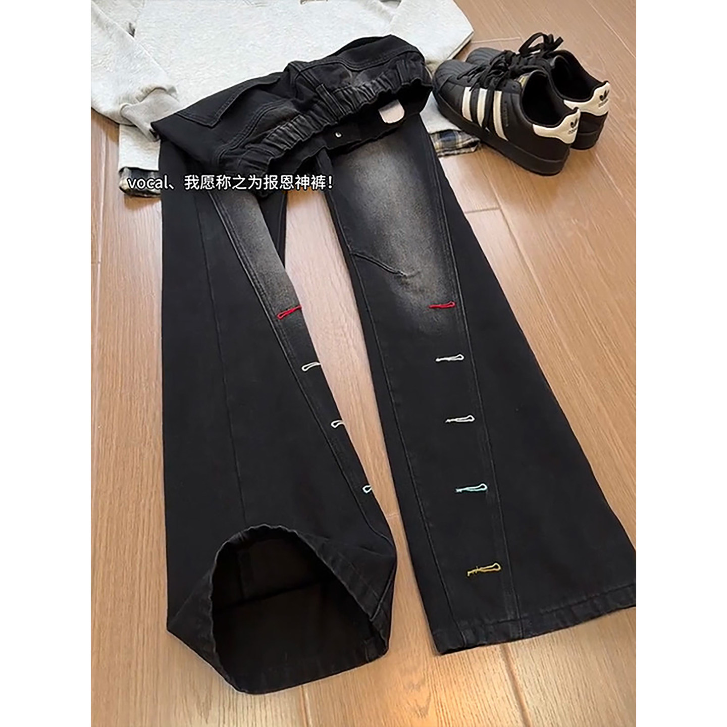淘HELIPORT停机坪 刷漆牛仔裤潮牌男女同款百搭高街微喇叭直筒裤