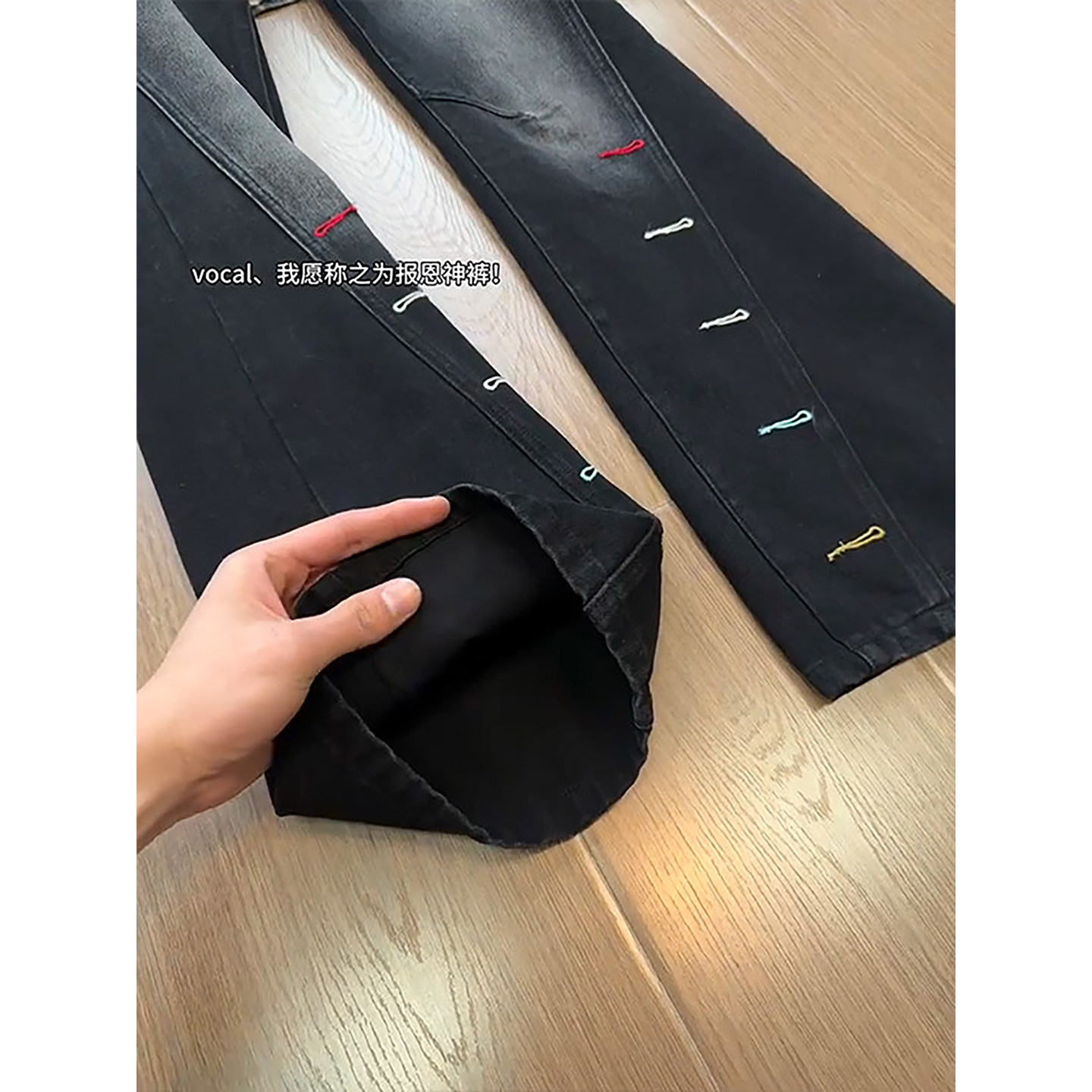 天猫美式痞帅高级感男士裤子vibe高街斜切刺绣牛仔裤直筒显瘦微喇长裤