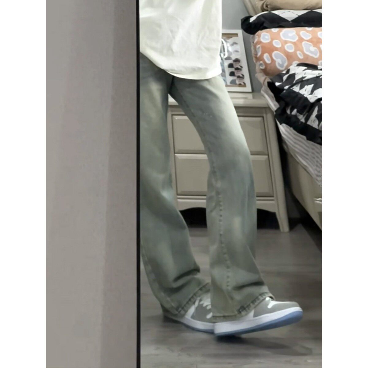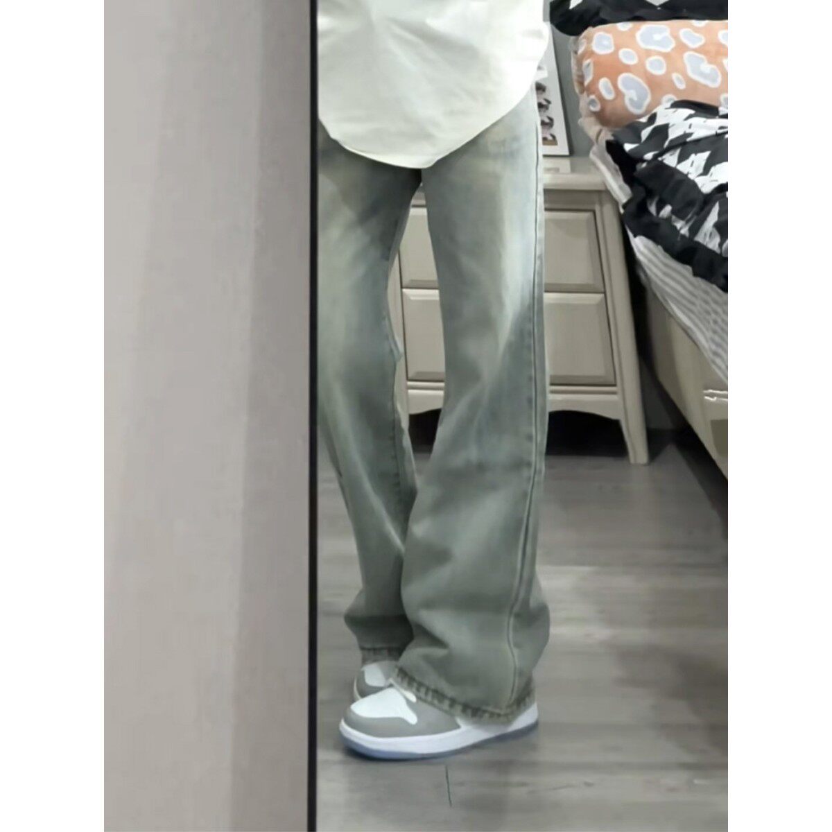 淘宝美式复古烟灰色微喇牛仔裤男秋季2025新款修身显瘦直筒高街裤子潮