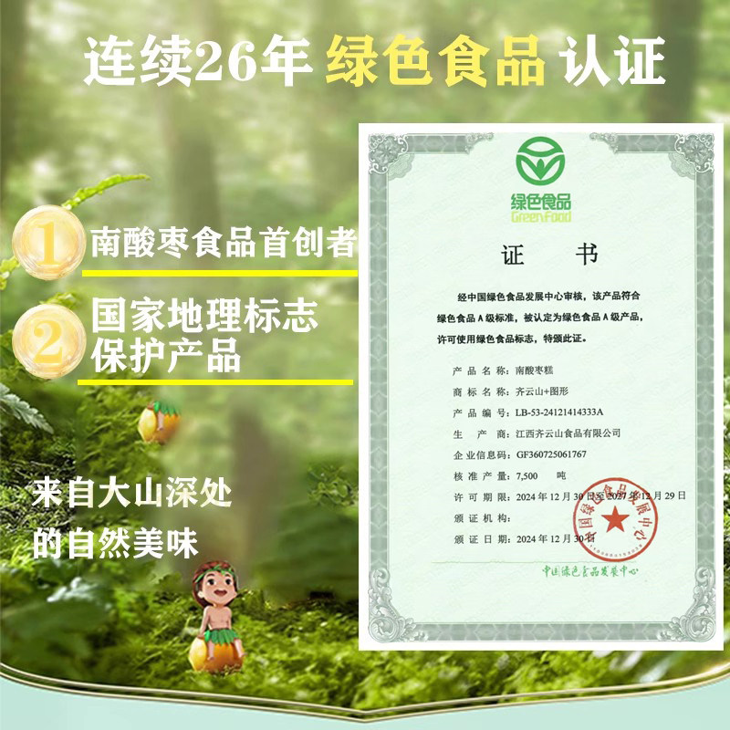 齐云山南酸枣糕是江西知名特产,选用当地优质野生南酸枣为原料,经传统工艺精制而成,口感酸甜适中、软糯Q弹,富含天然果胶与维生素,健康无添加。桶装与散装两种包装,满足不同消费需求,方便携带与储存。作为天然蜜饯类小零食,不仅适合孕妇补充营养、缓解孕吐,也深受儿童喜爱,是老少皆宜的健康休闲食品。齐云山品牌专注品质,旗舰级产品保障,传承赣南风味,让每一口都充满自然清香。无论是日常解馋、办公零食,还是走亲访友伴手礼,齐云山南酸枣糕都是理想之选,品味地道江西风味,享受安心美味时光。