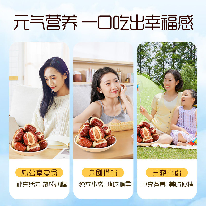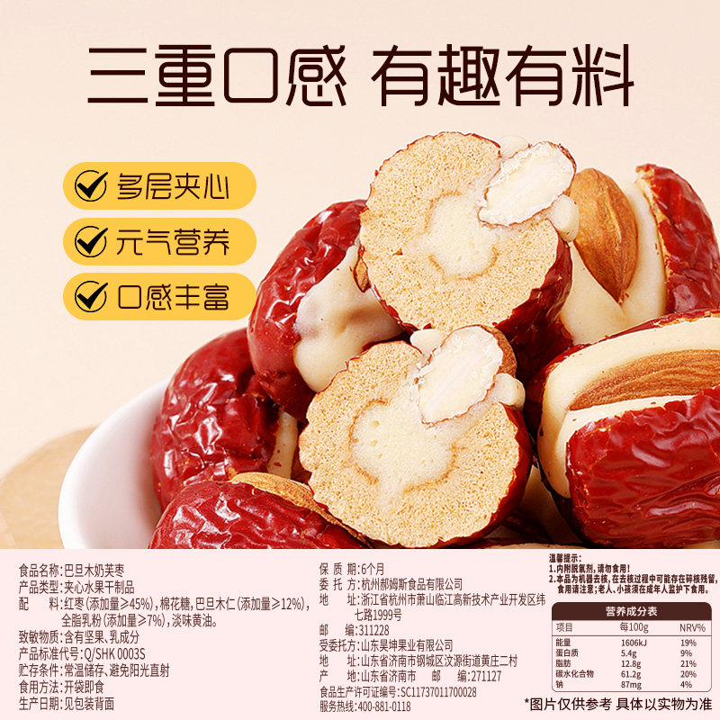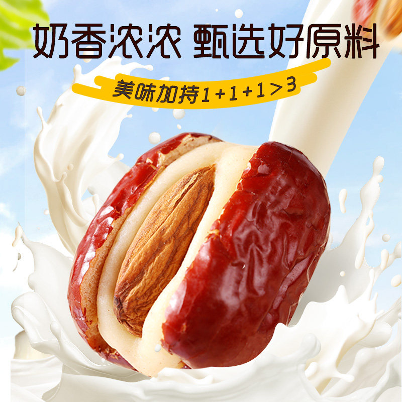 天猫百草味巴旦木奶芙枣258g坚果夹心泡芙红枣新疆果脯蜜饯休闲小零食
